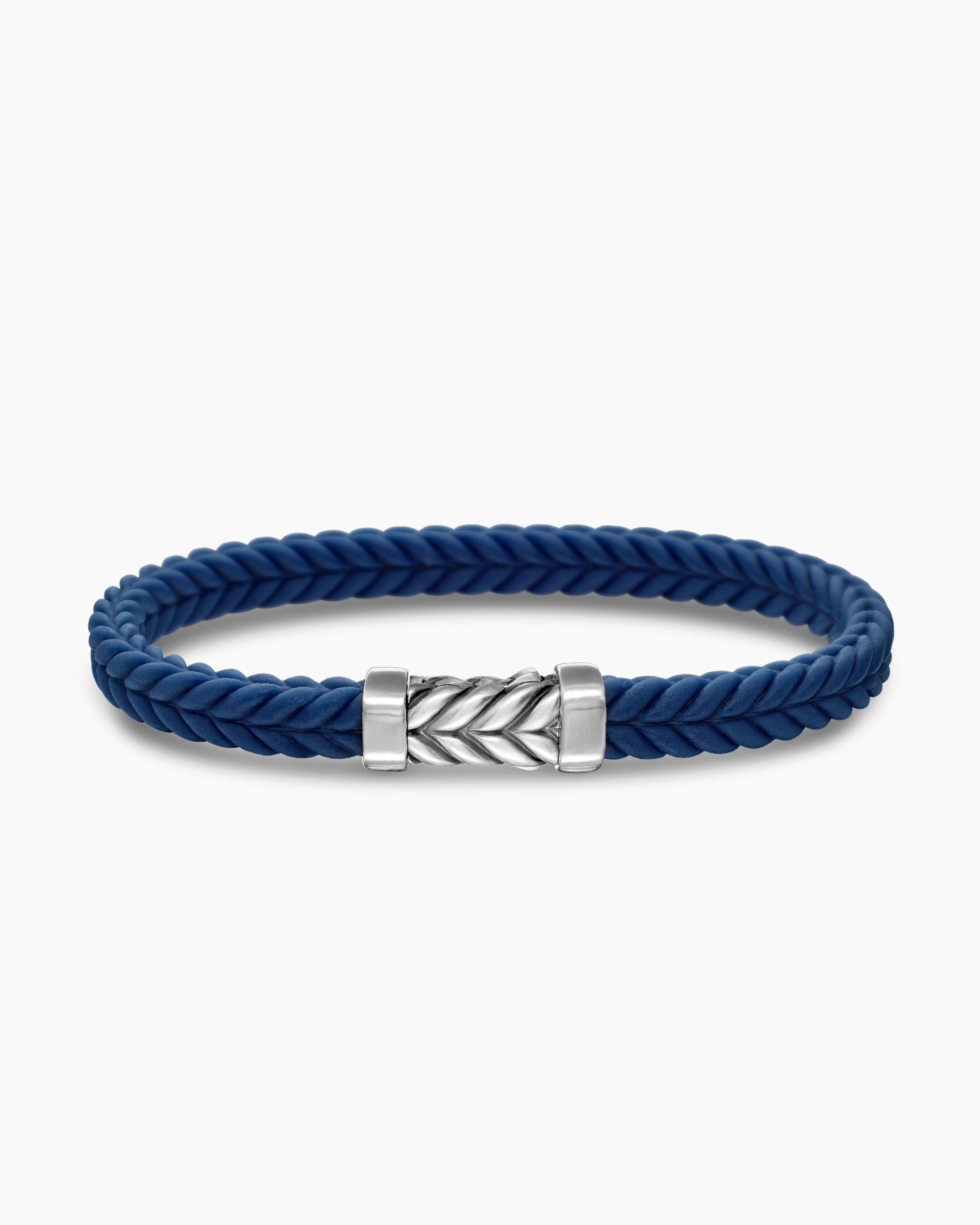 Bracelet Chevron Caoutchouc bleu avec argent massif, 6 mm