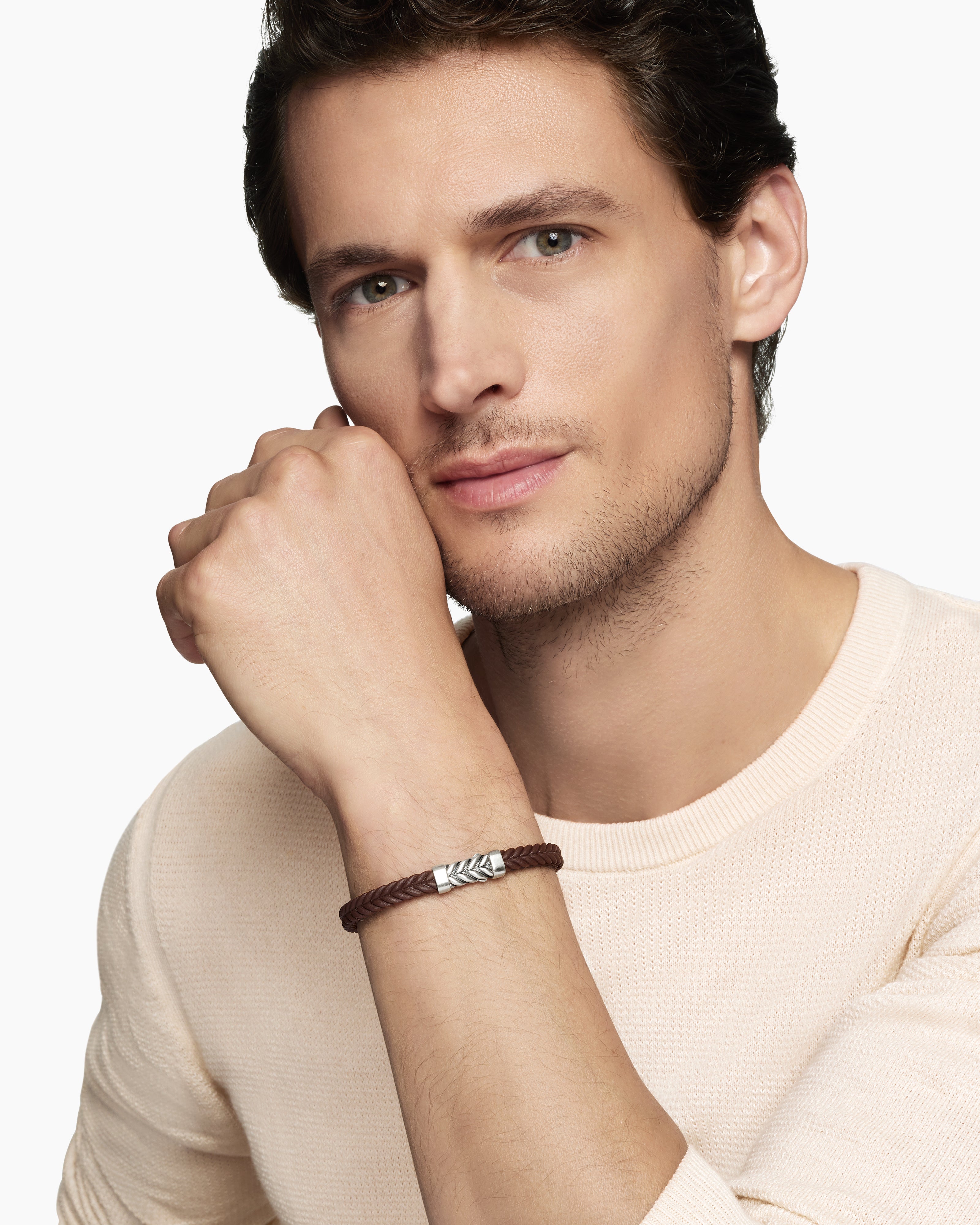 Chevron est un motif ancien caractérisé par une forme de « V » inversée, l’un des plus anciens symboles de l’histoire humaine. David Yurman a saisi une certaine familiarité dans cette forme simple : vues côte à côte, les lignes en zigzag des chevrons apparaissent comme une image aplatie de notre design Cable emblématique.