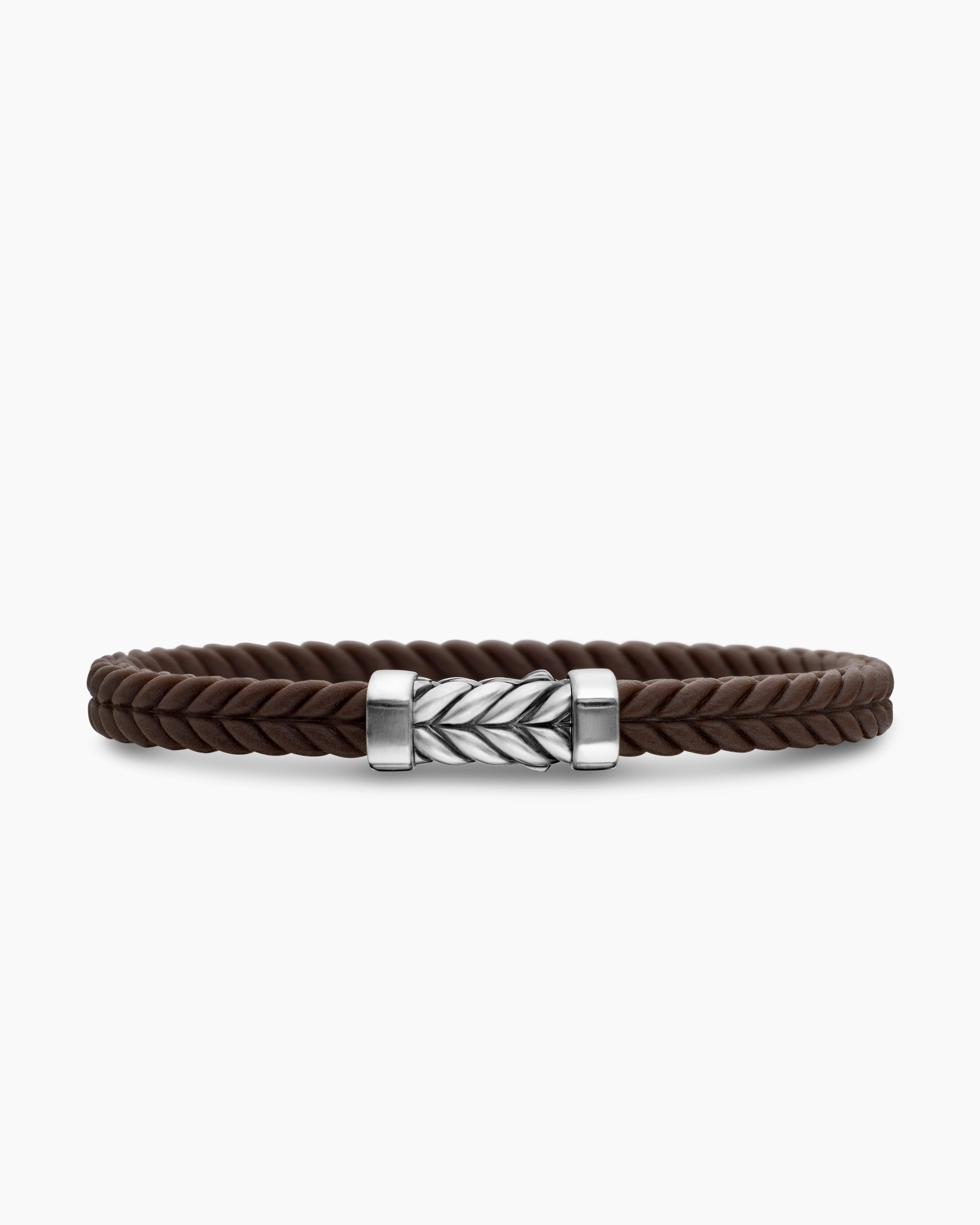 Bracelet Chevron Caoutchouc marron avec argent massif, 6 mm