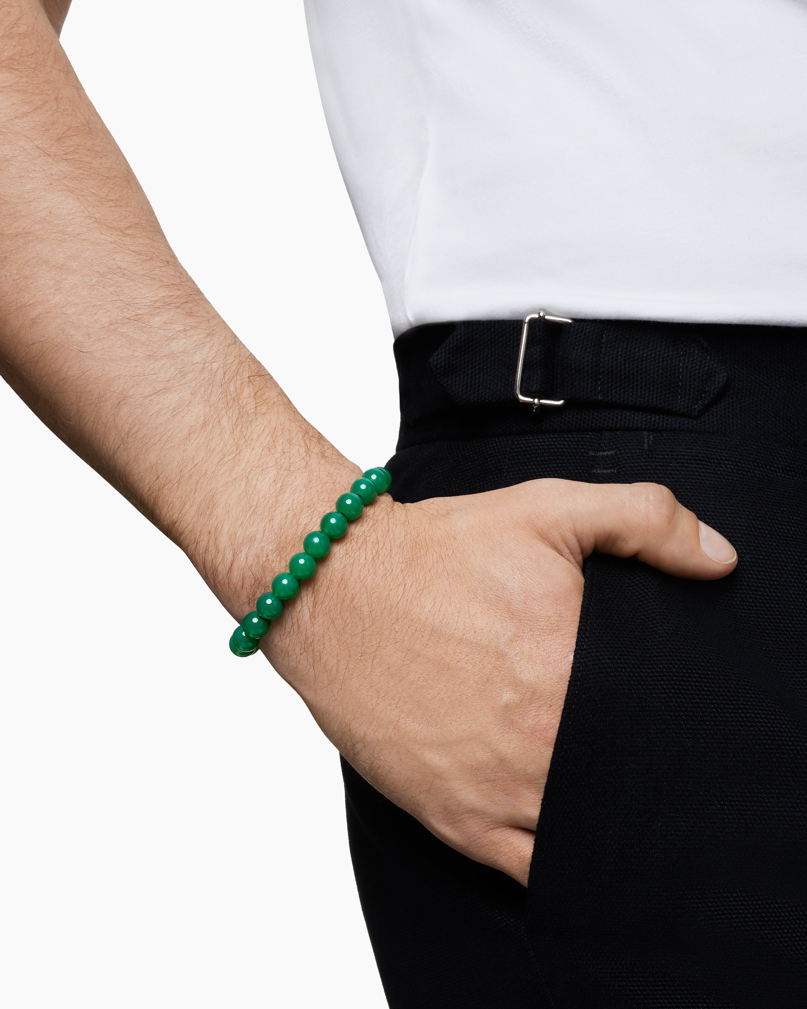 Bracelet Spiritual Beads Argent massif avec onyx vert, 8 mm