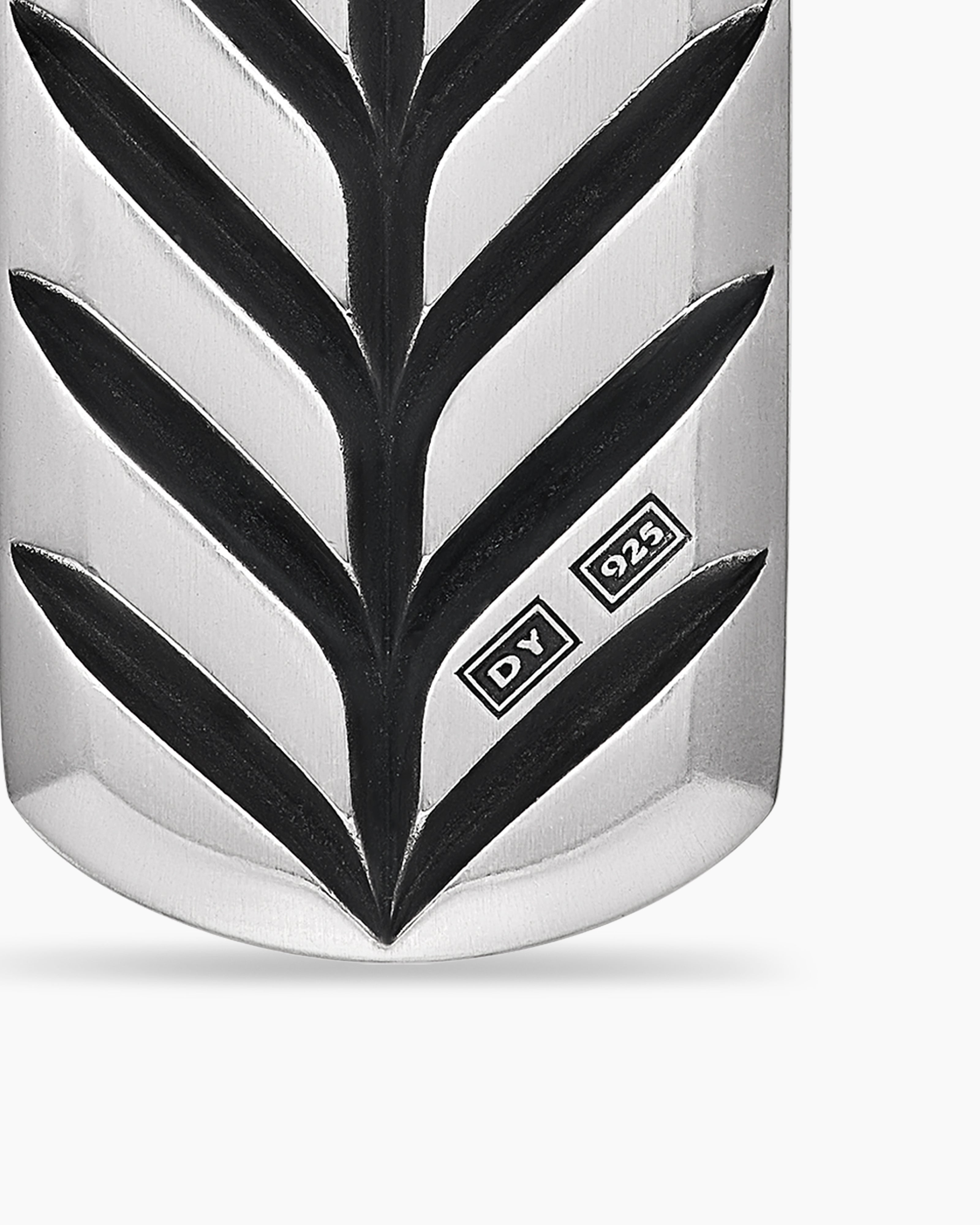 Comme de nombreux motifs de David Yurman, Chevron joue avec l’ombre et la lumière. Les rainures profondément sculptées dans le design sont souvent oxydées pour contraster avec les cannelures hautement polies.