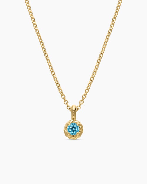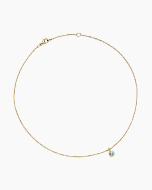 Cable Collectibles® Teen Birthstone Necklace 18K Yellow Gold with Blue Topaz, 3mm