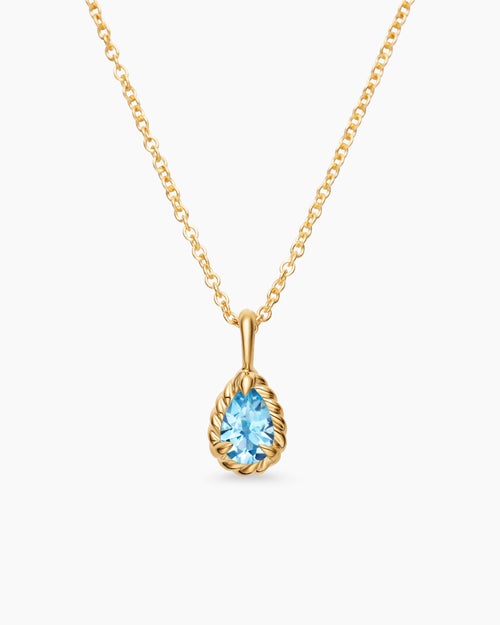 Cable Collectibles® Teen Teardrop Necklace 18K Yellow Gold with Blue Topaz