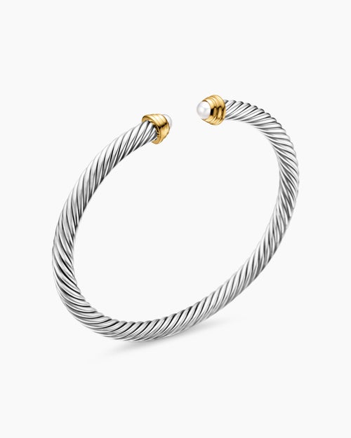 Cable Teen Bracelet Sterling Silver with 14K Yellow Gold and Pearls, 4mm