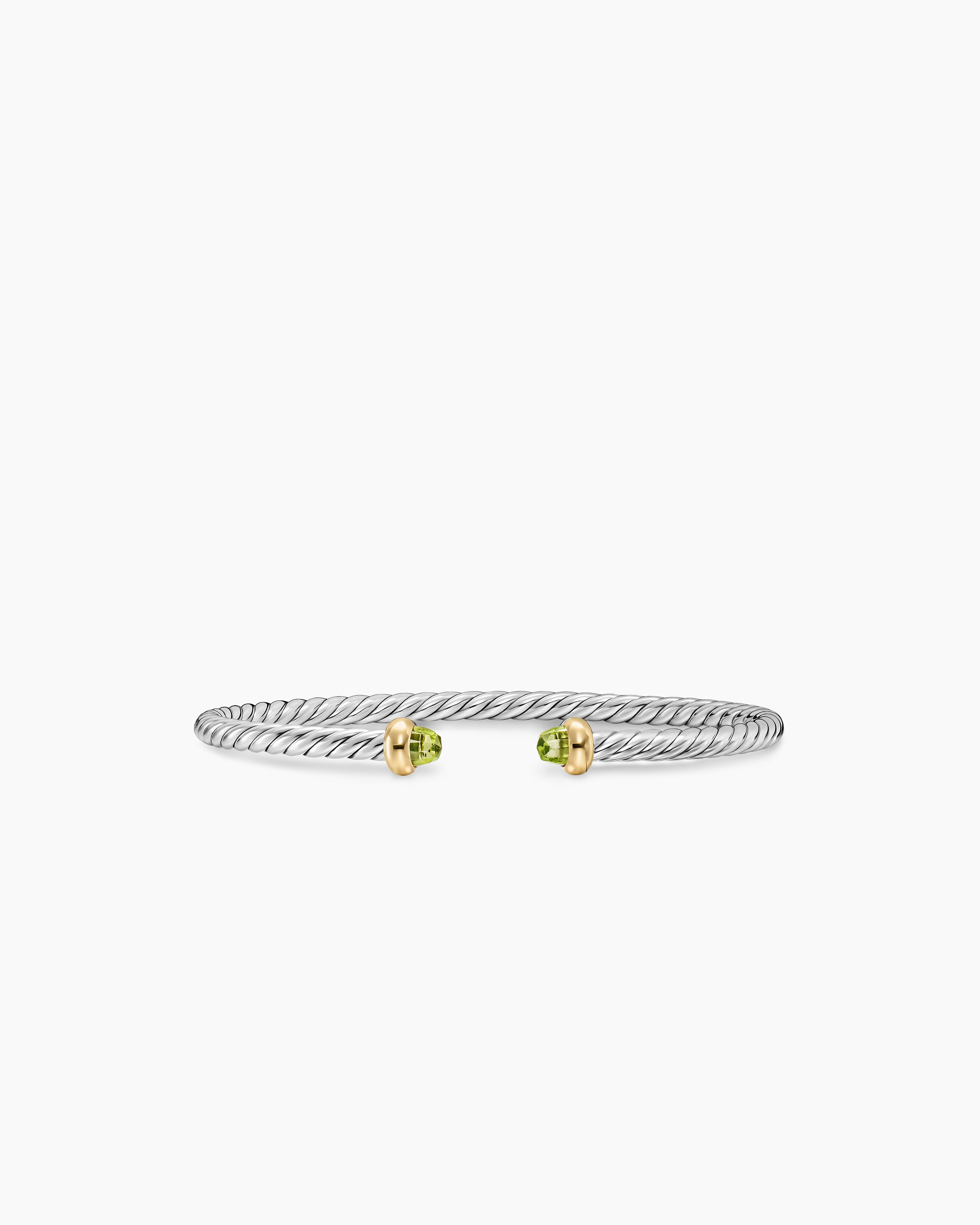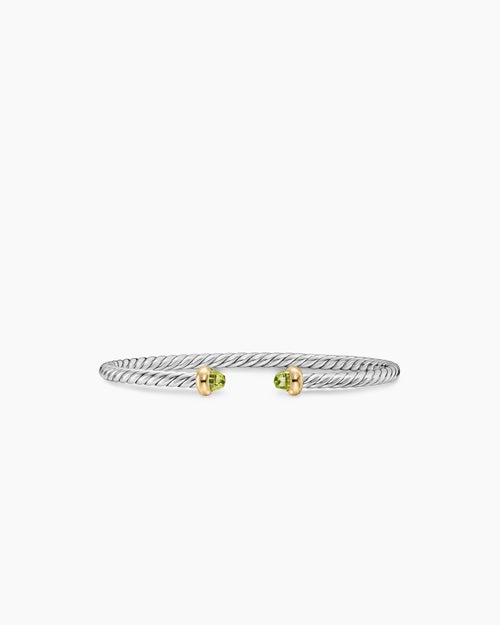 Micro Cable Flex® Teen Bracelet Sterling Silver with 14K Yellow Gold and Peridot, 2.6mm