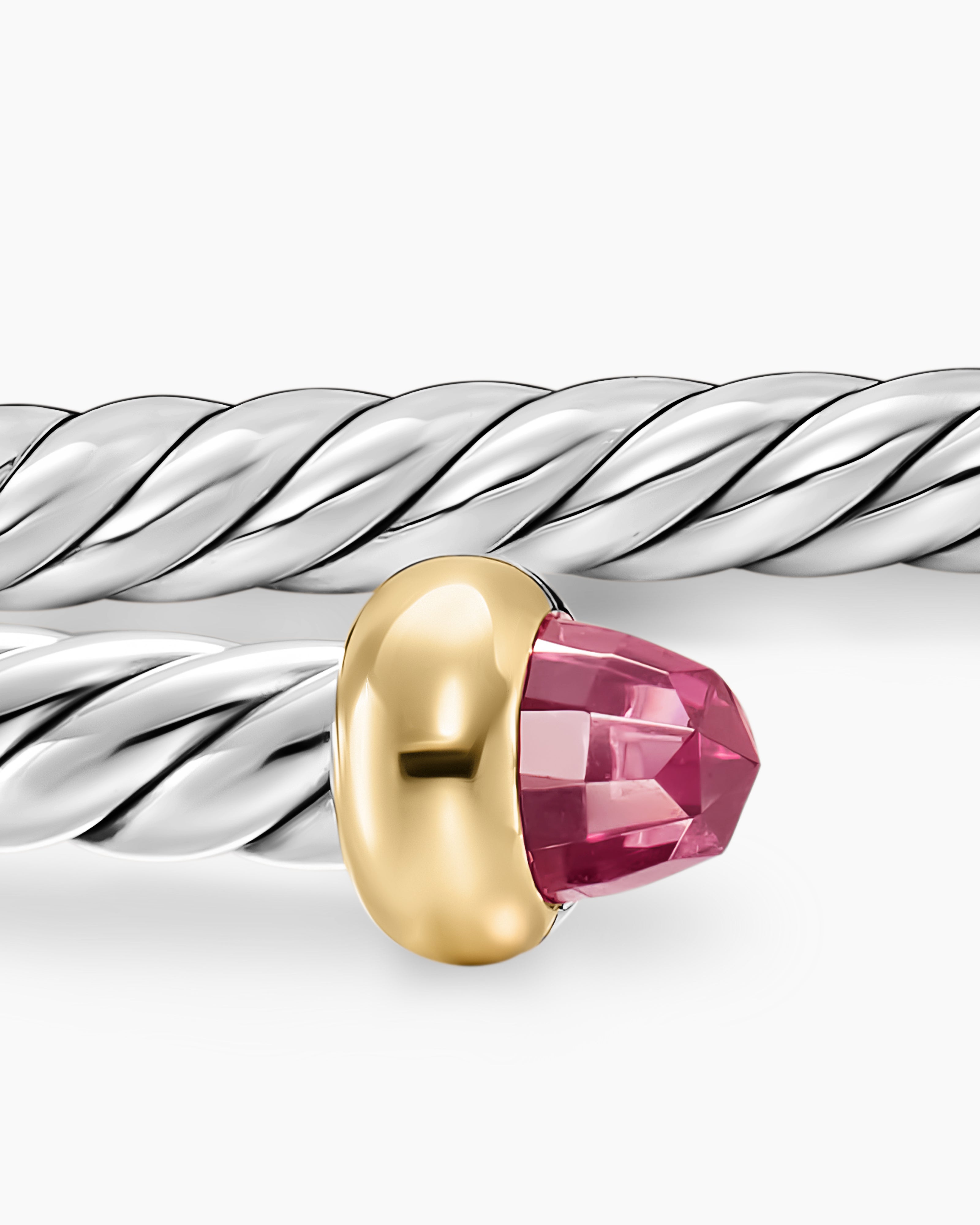 Micro Cable Flex® Teen Bracelet Sterling Silver with 14K Yellow Gold and Pink Tourmalines, 2.6mm