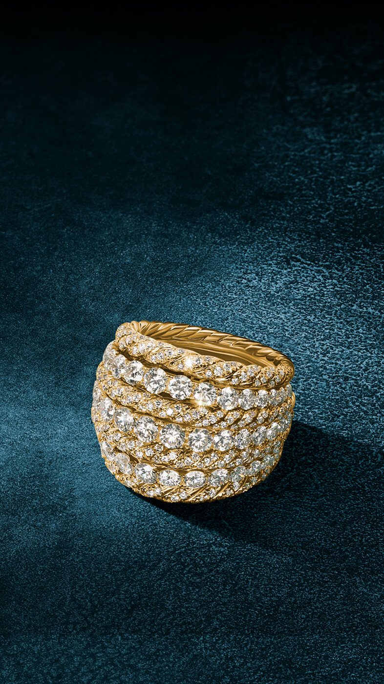 Floating Diamonds Alternating Cable Dome Ring, women’s collection. 18K Yellow Gold with GH/VS Diamonds (3.44 carats).