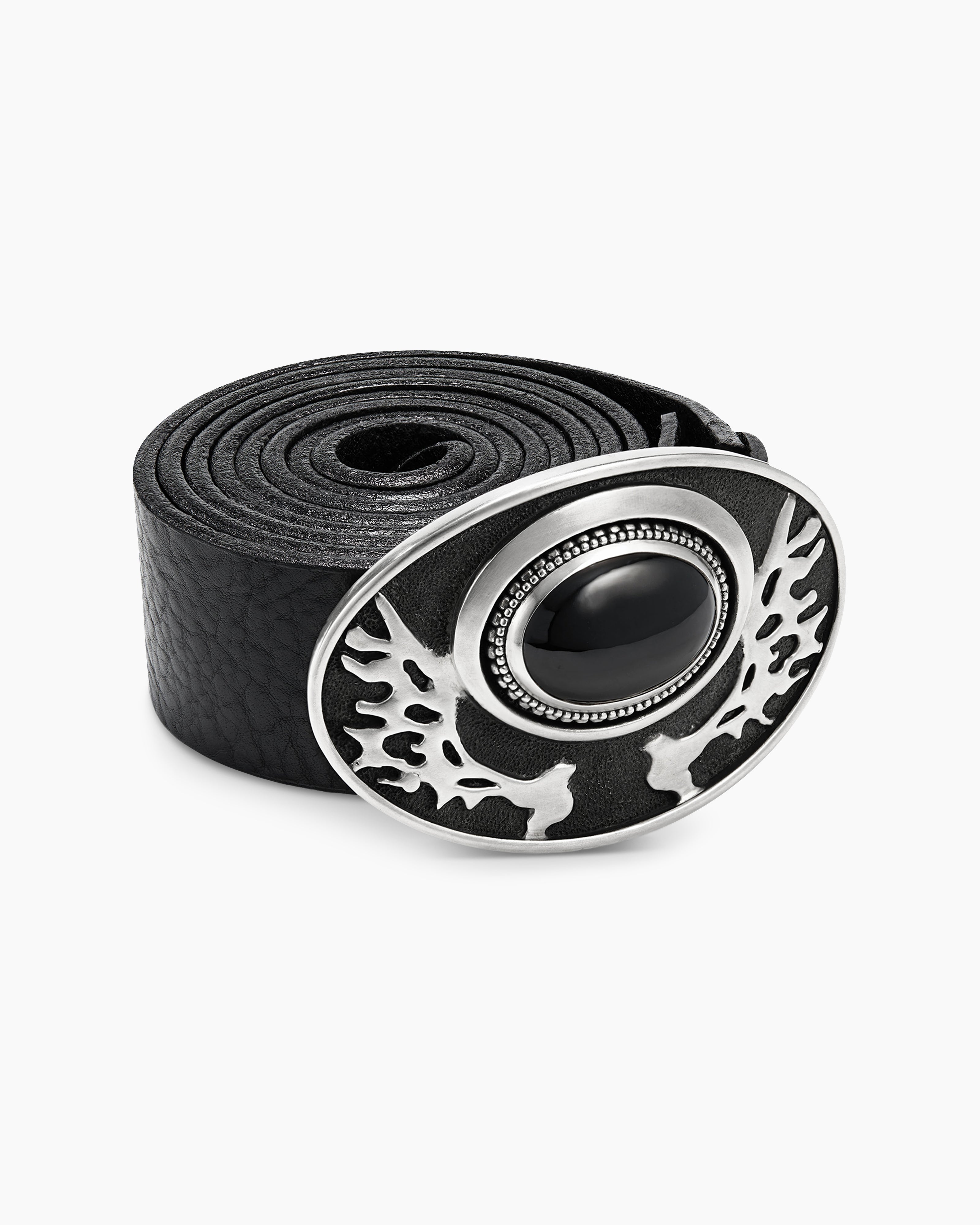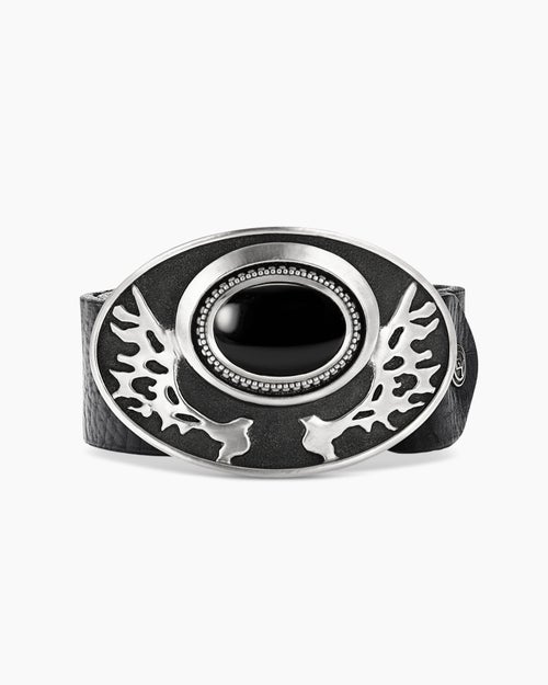 Exotic Stone Angel Wing Belt Buckle Sterling Silver with Black Onyx