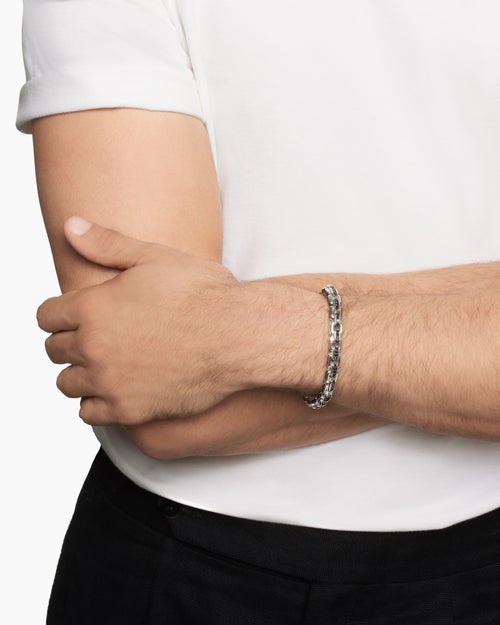 Box Chain Bracelet Sterling Silver with Black Diamonds, 7.3mm