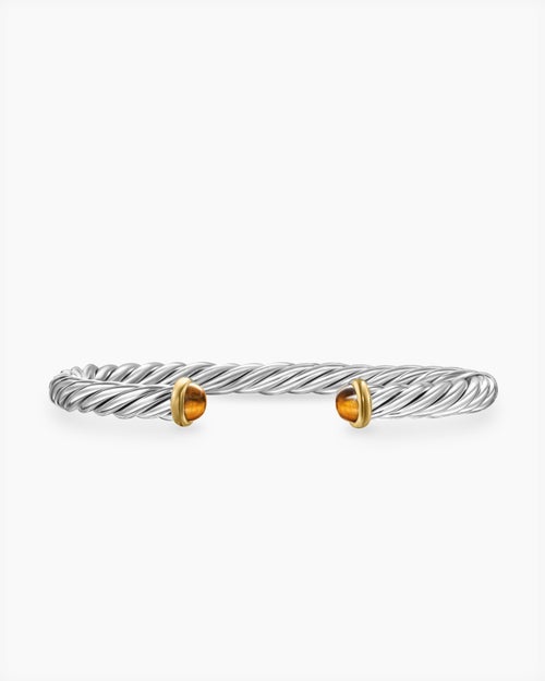 Cable Cuff Bracelet Sterling Silver with 14K Yellow Gold and Tiger's Eye, 6mm