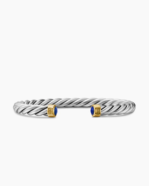 Cable Cuff Bracelet Sterling Silver with 18K Yellow Gold and Lapis, 6mm