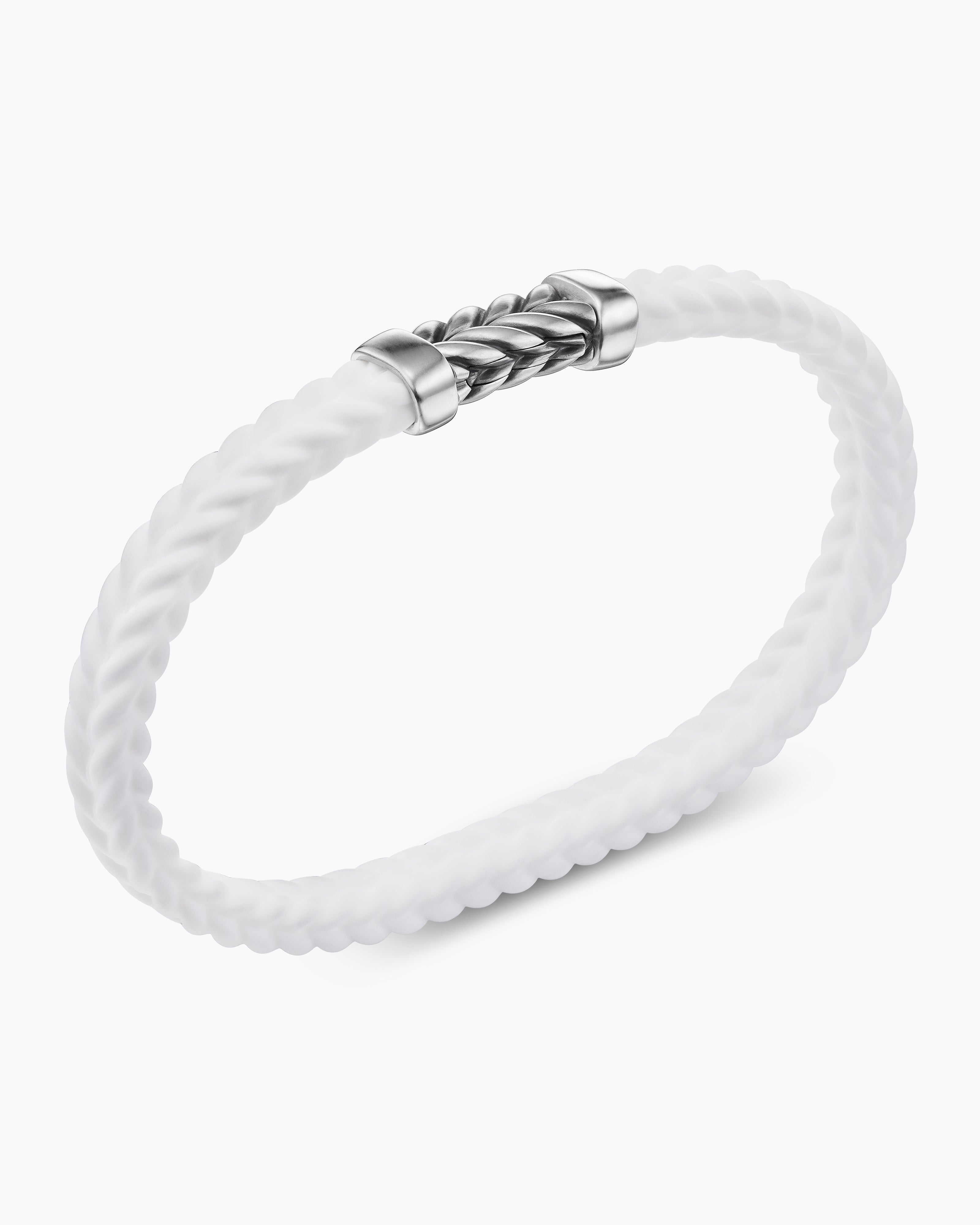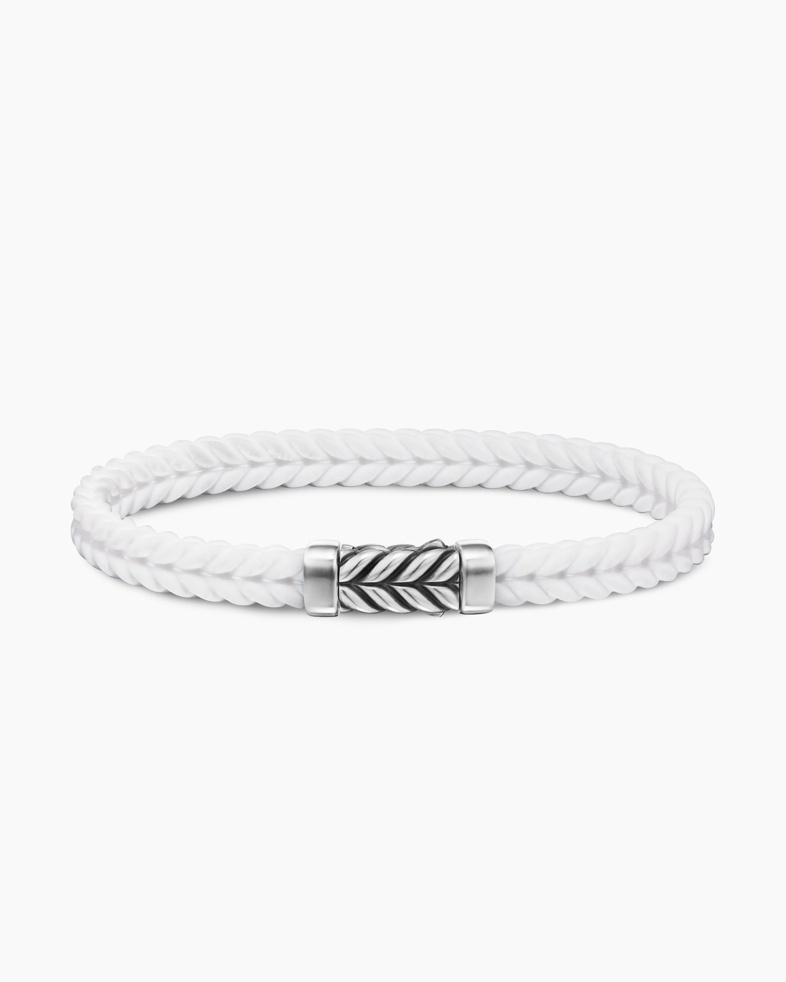 Chevron Bracelet White Rubber with Sterling Silver, 6mm
