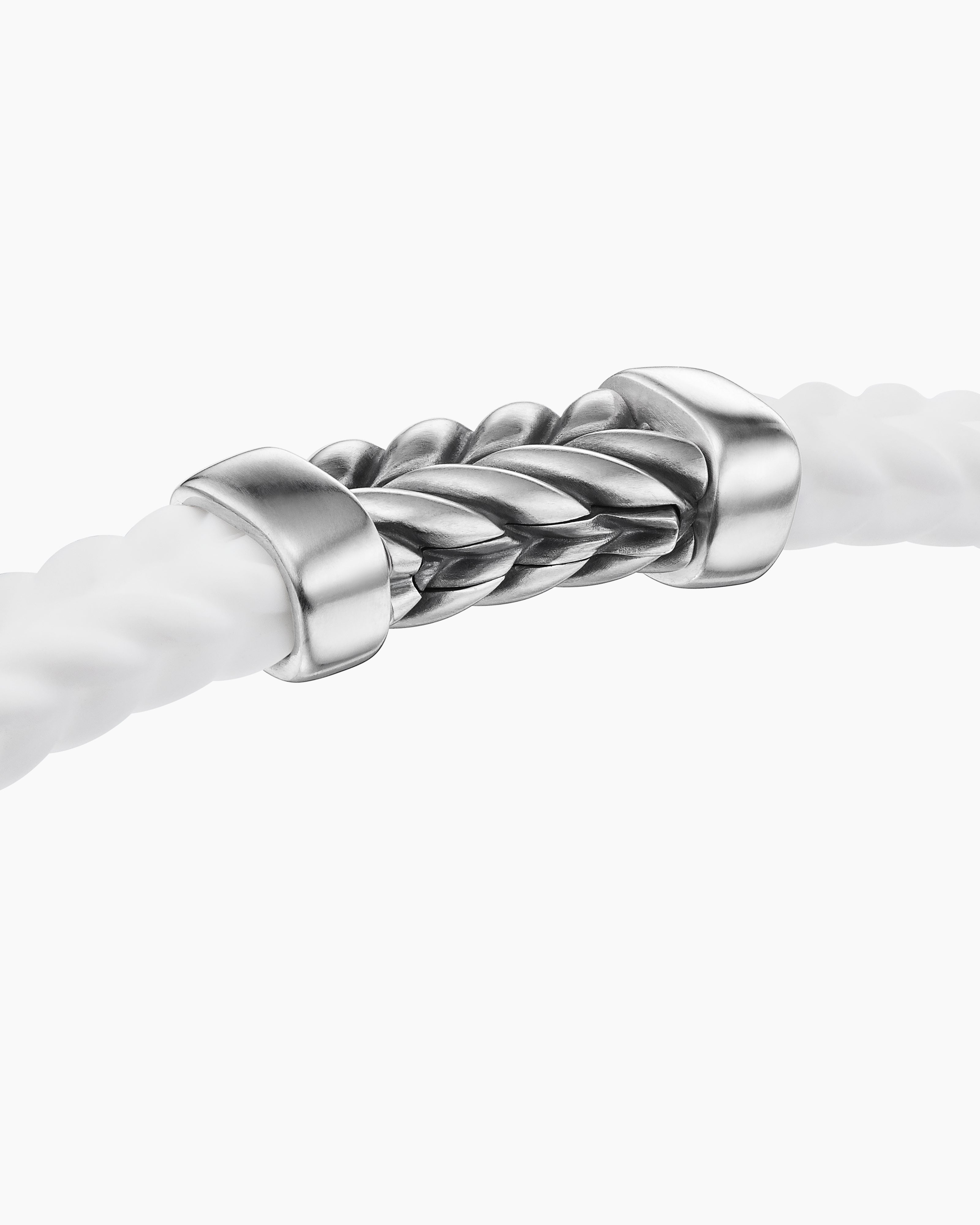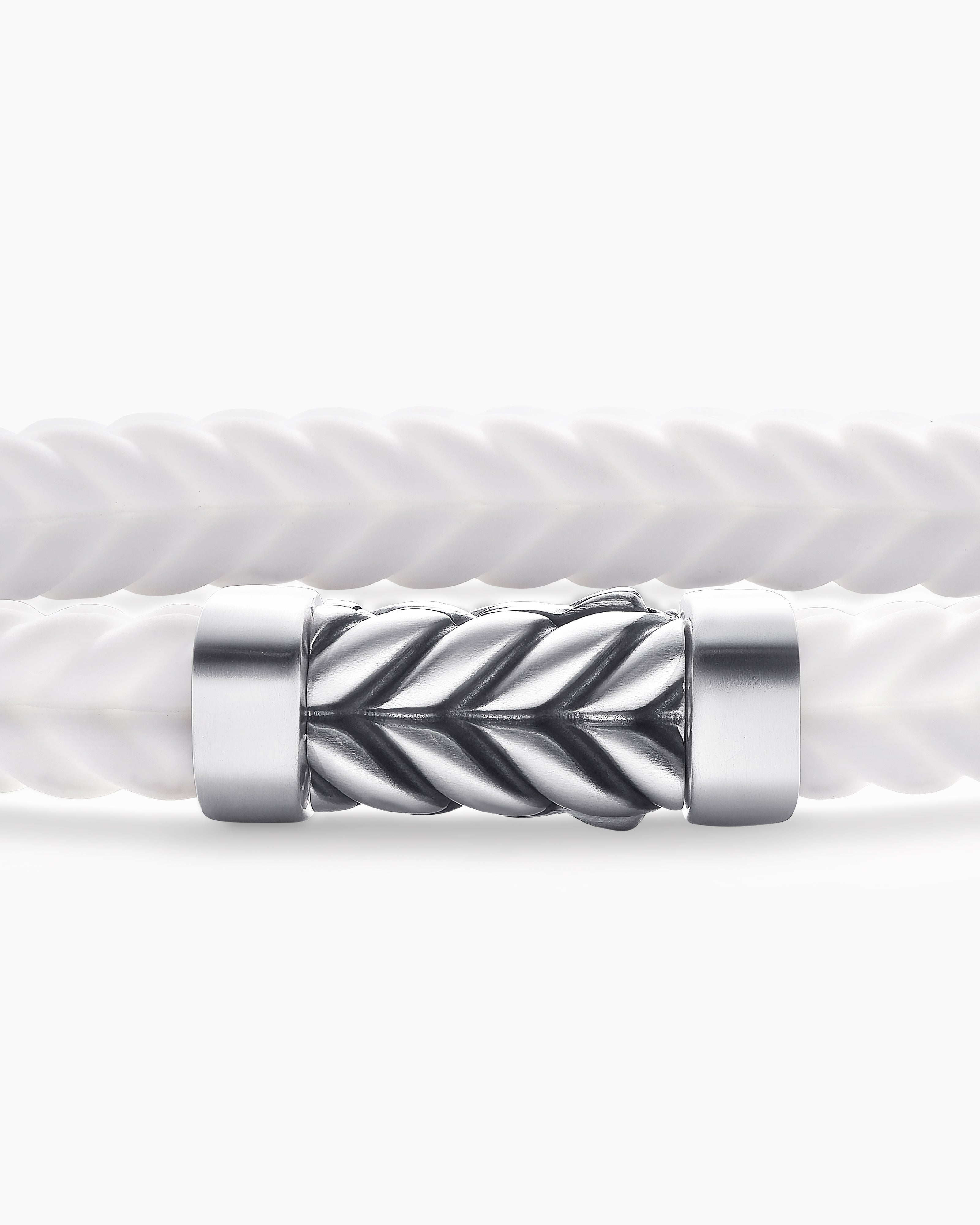 Like many David Yurman motifs, Chevron is a play on light and dark. The deeply carved valleys in the design are often oxidized to contrast with the highly polished flutes.
