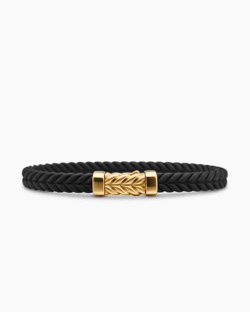 Chevron Bracelet Black Rubber with 18K Yellow Gold, 6mm