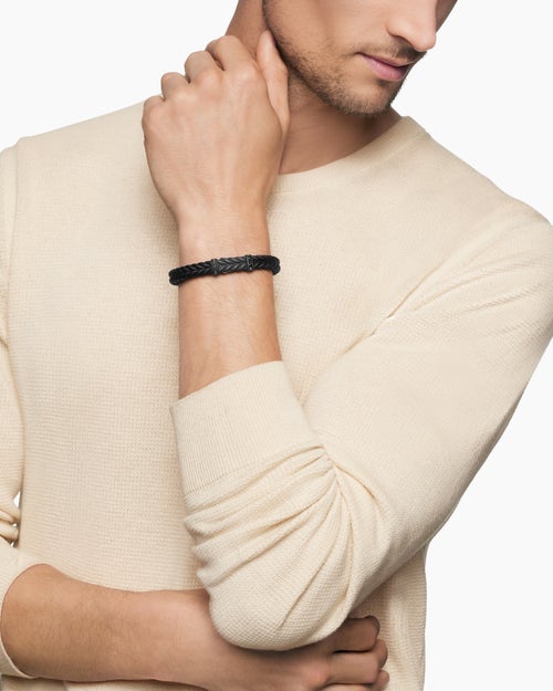 Chevron is an ancient motif with an inverted "v" shape—one of the oldest symbols in human history. David Yurman recognized something familiar in this simple form: viewed side-by-side, chevron’s zigzagging lines appear like a flattened image of our signature Cable design.