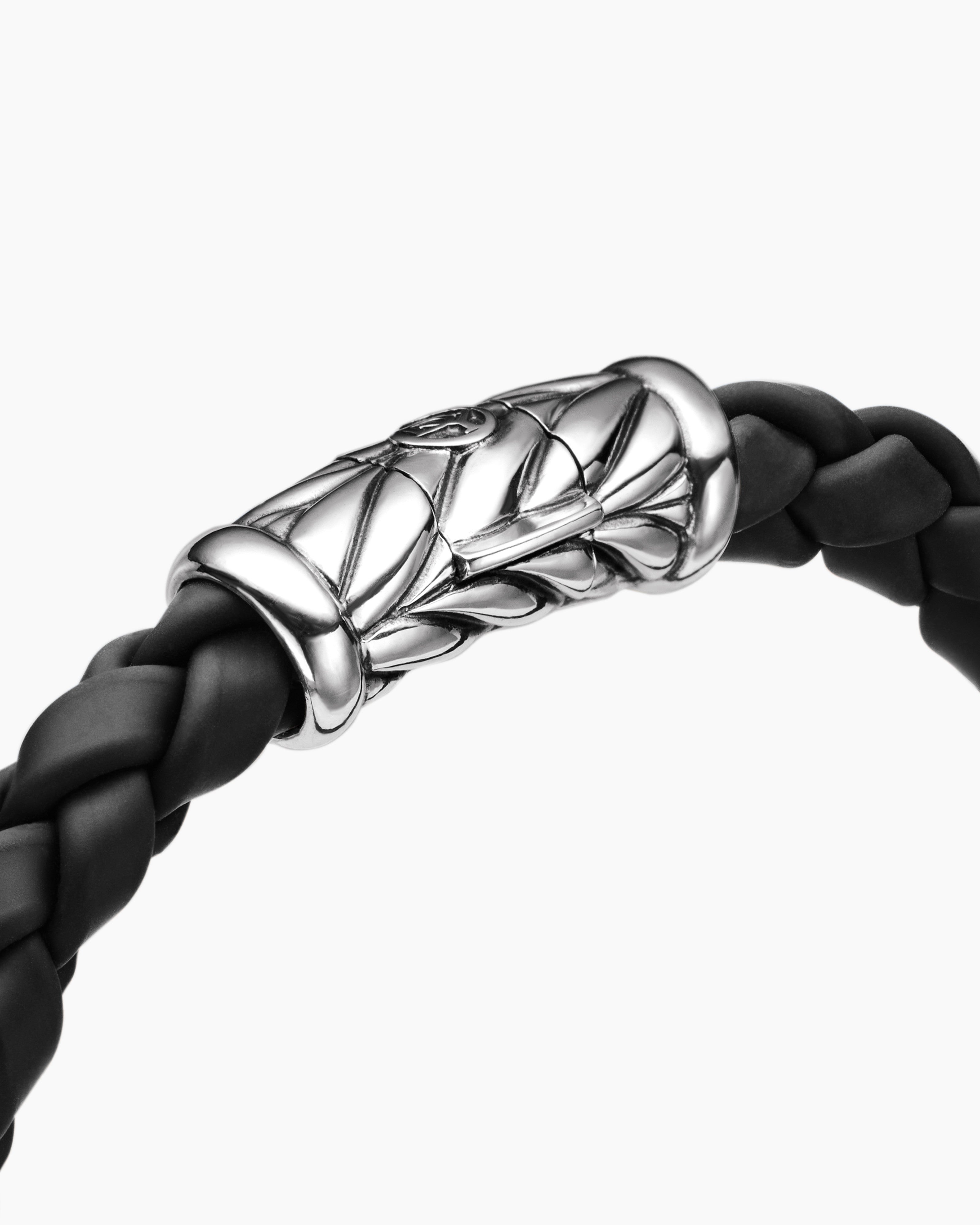 Chevron Bracelet Black Rubber and Sterling Silver, 8mm