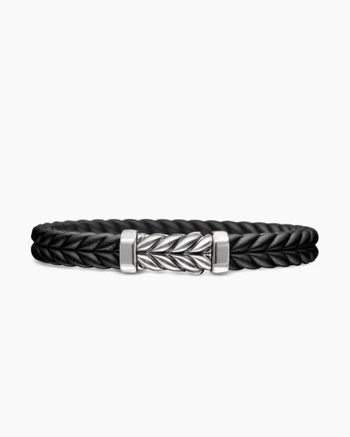 Chevron Bracelet Black Rubber with Sterling Silver, 9mm