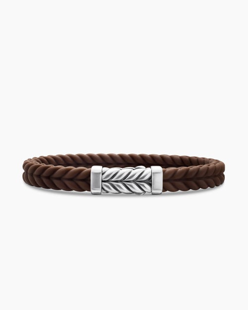 Chevron Bracelet Brown Rubber with Sterling Silver, 9mm
