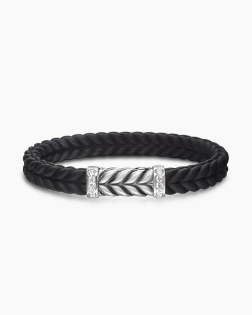 Chevron Bracelet Black Rubber with Diamonds and Sterling Silver, 9mm