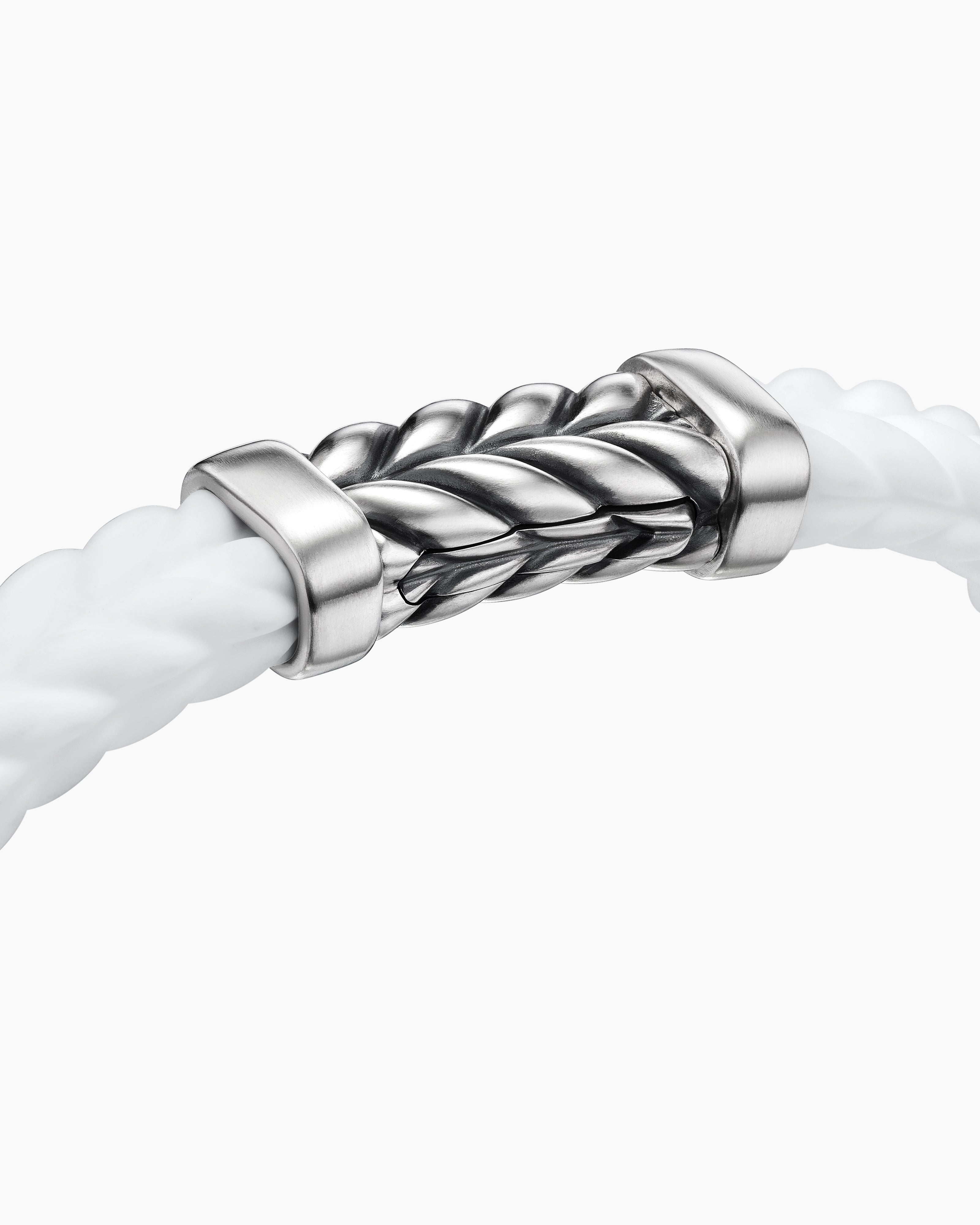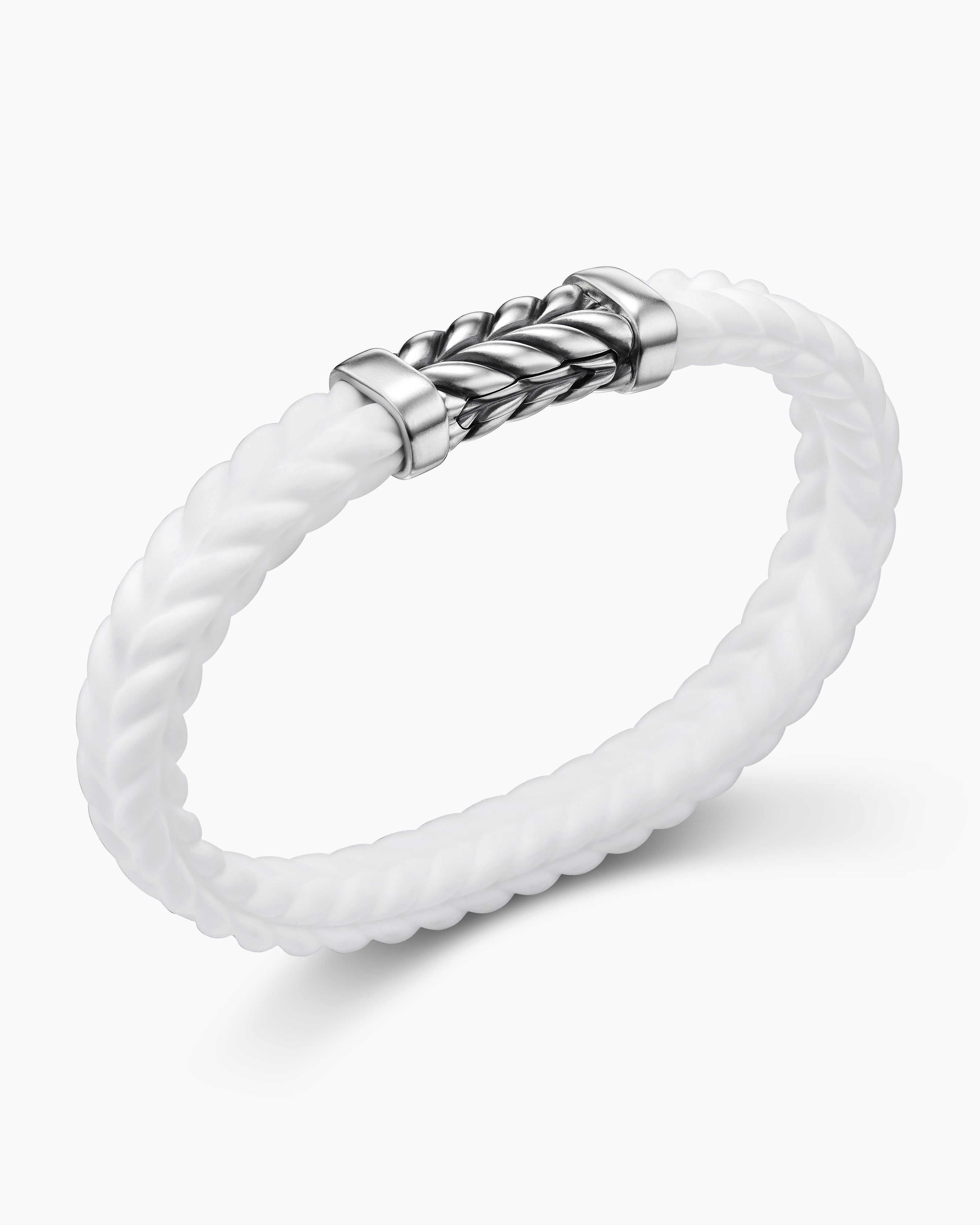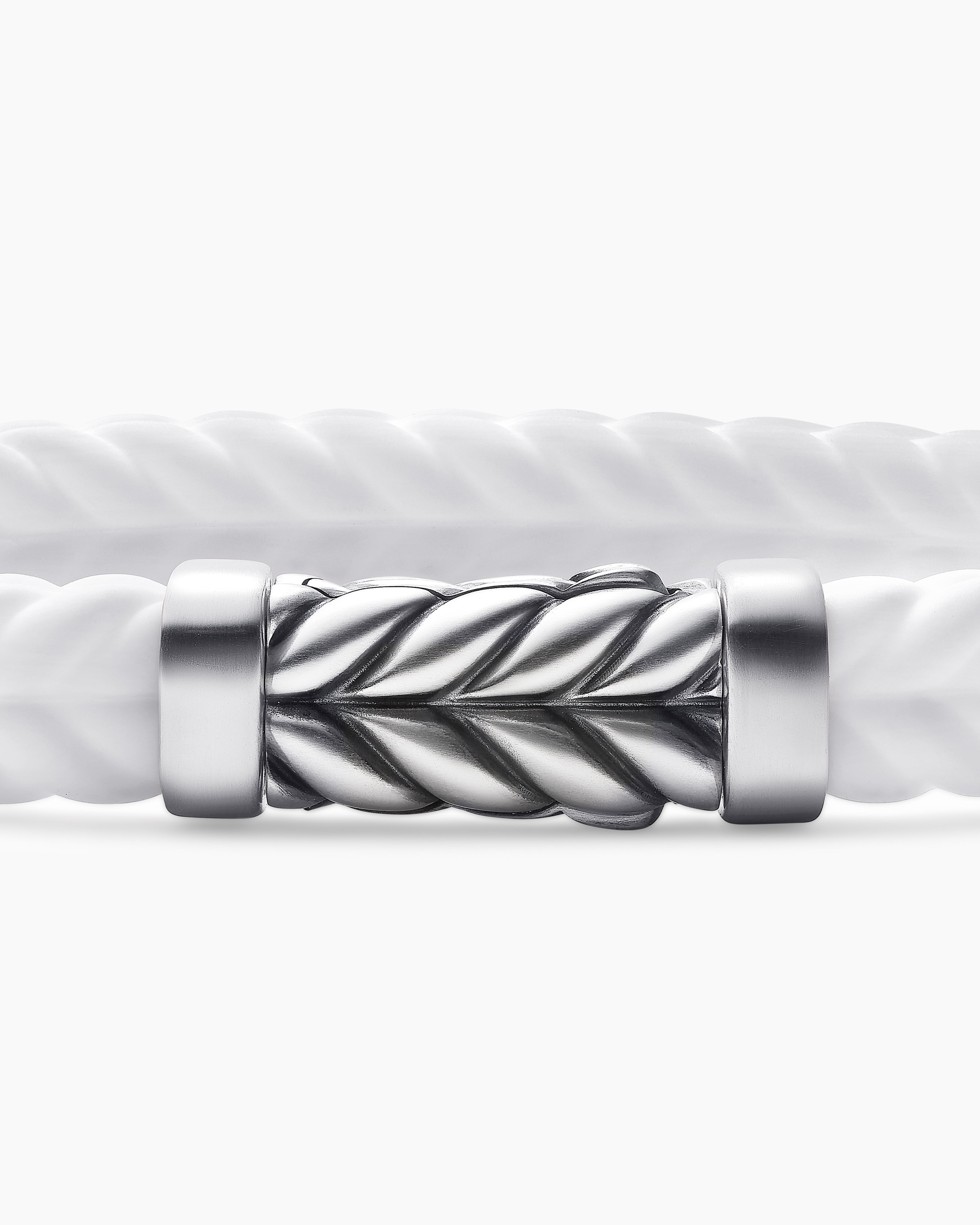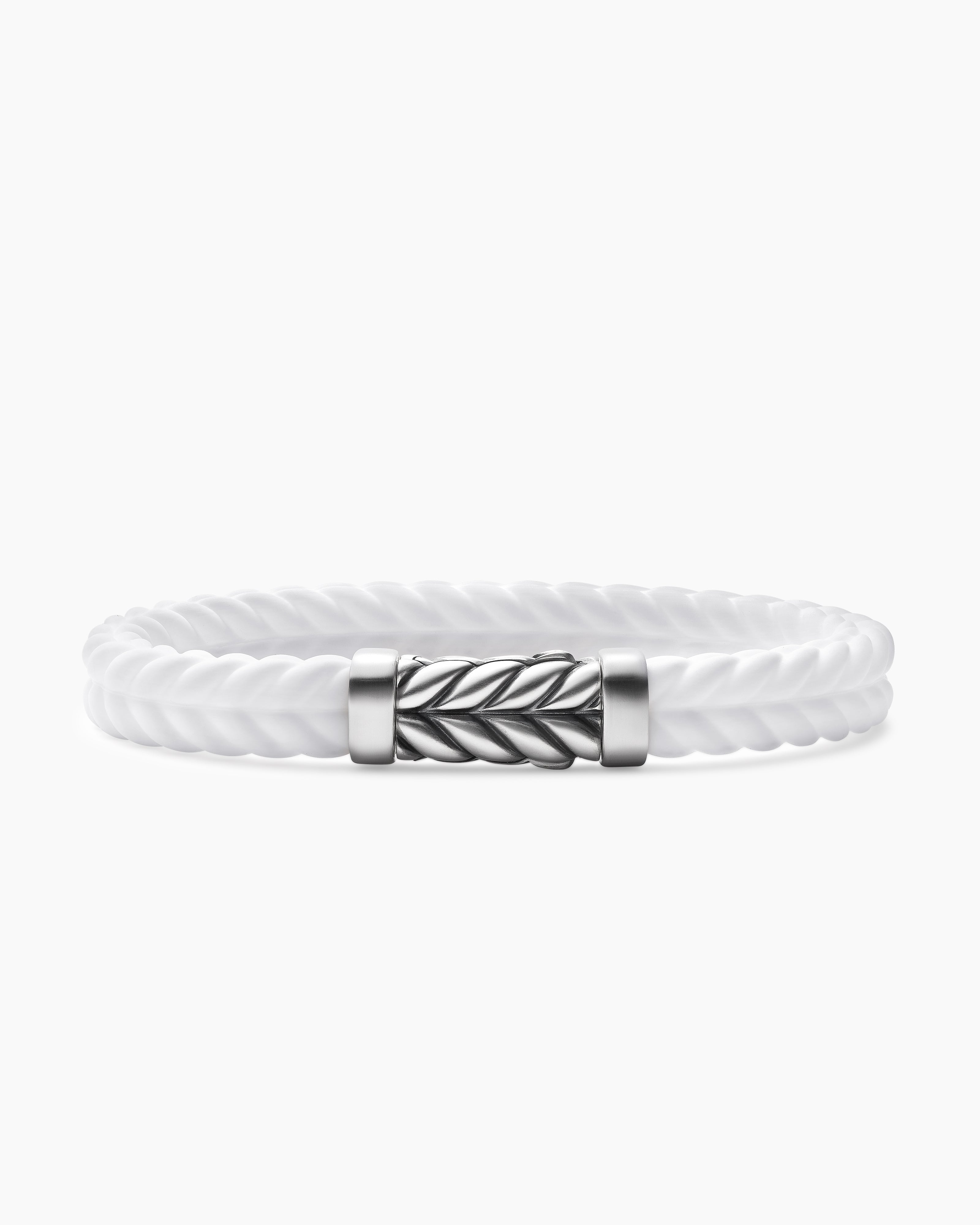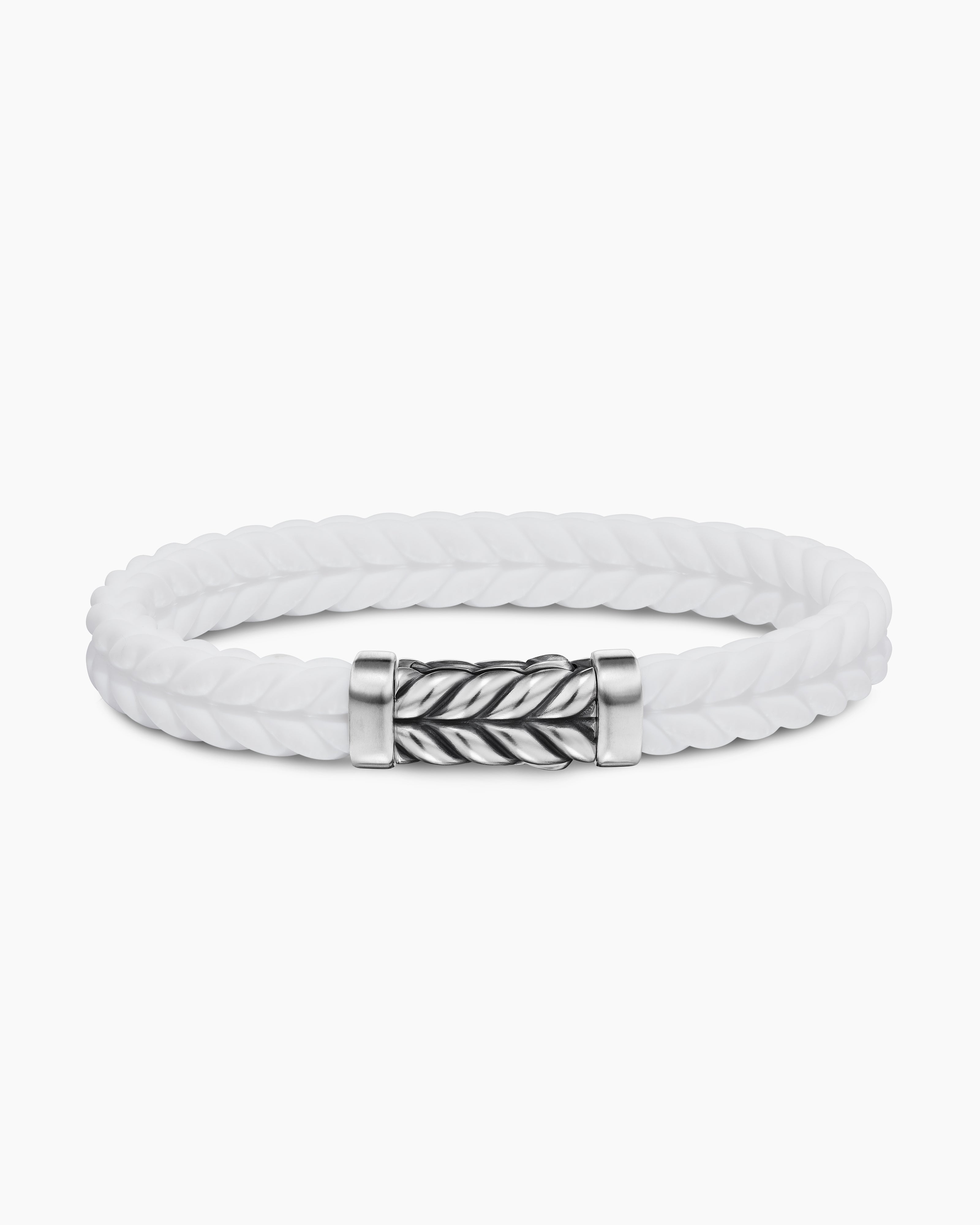Chevron Bracelet White Rubber with Sterling Silver, 9mm