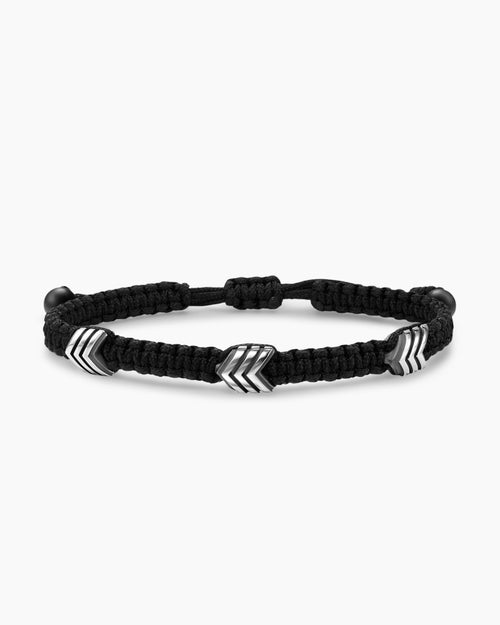Chevron Woven Station Bracelet Black Nylon with Sterling Silver and Black Onyx, 8.6mm
