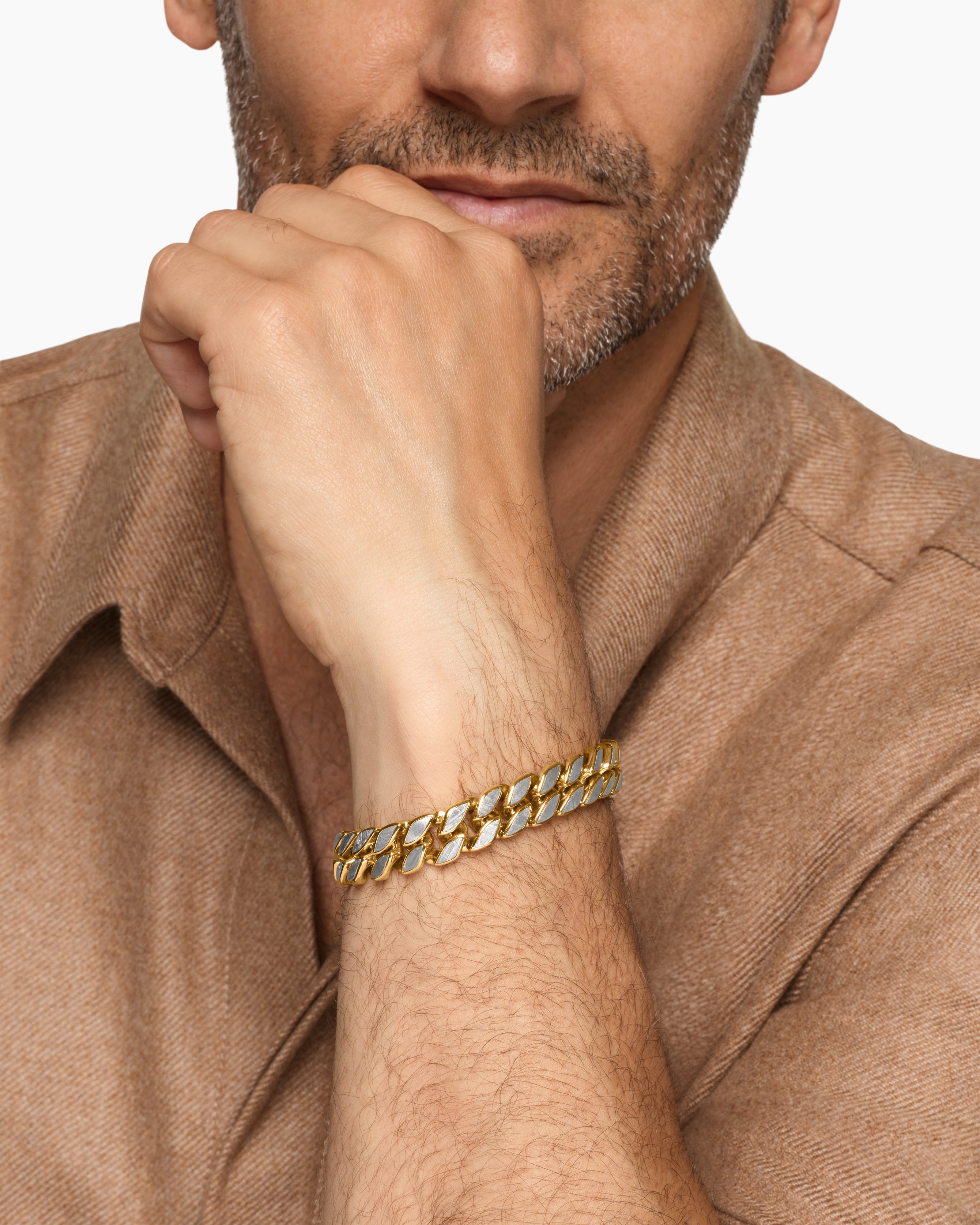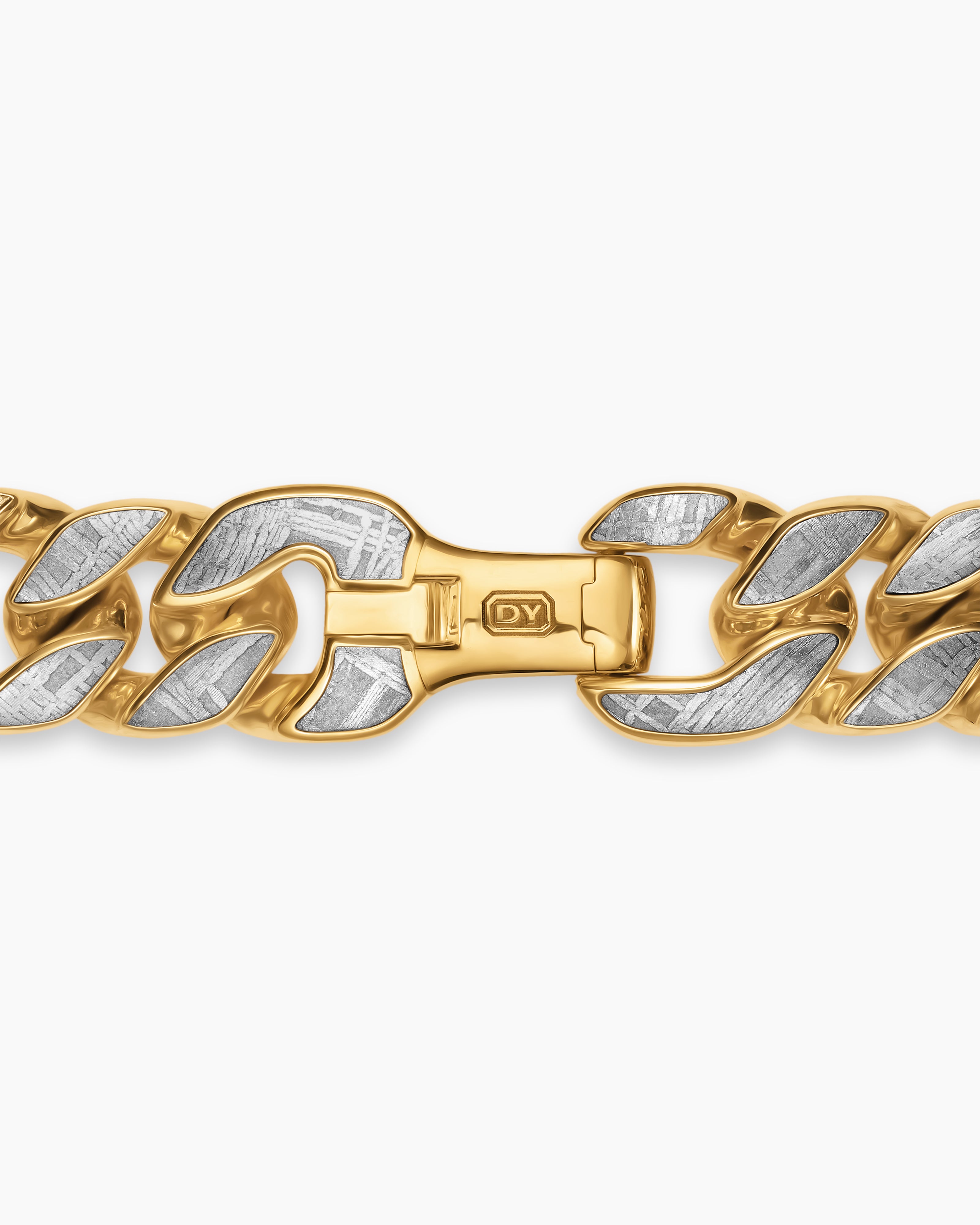 Curb Chain Bracelet 18K Yellow Gold with Meteorite, 11.5mm