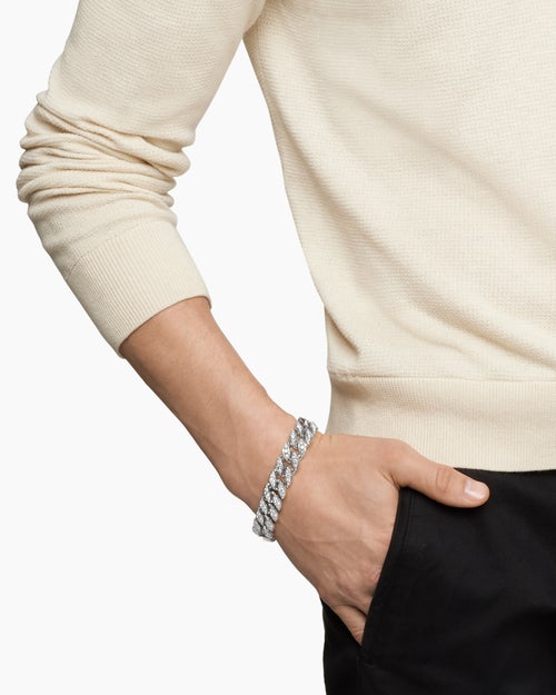 Curb Chain Bracelet Sterling Silver with Diamonds, 14.5mm