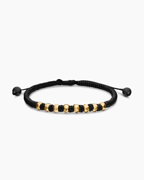 Fortune Woven Bracelet Black Nylon with Black Onyx and 18K Yellow Gold, 5.5mm