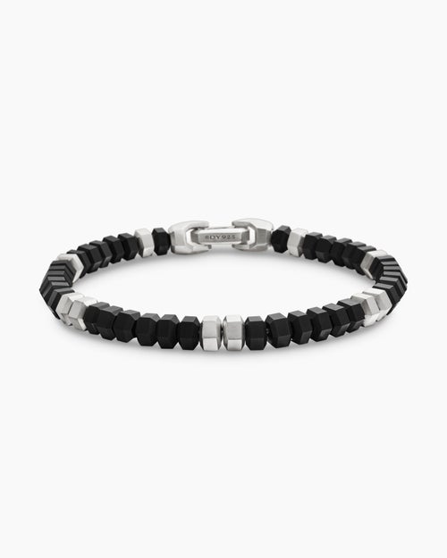 Hex Bead Bracelet Sterling Silver with Black Onyx, 6mm