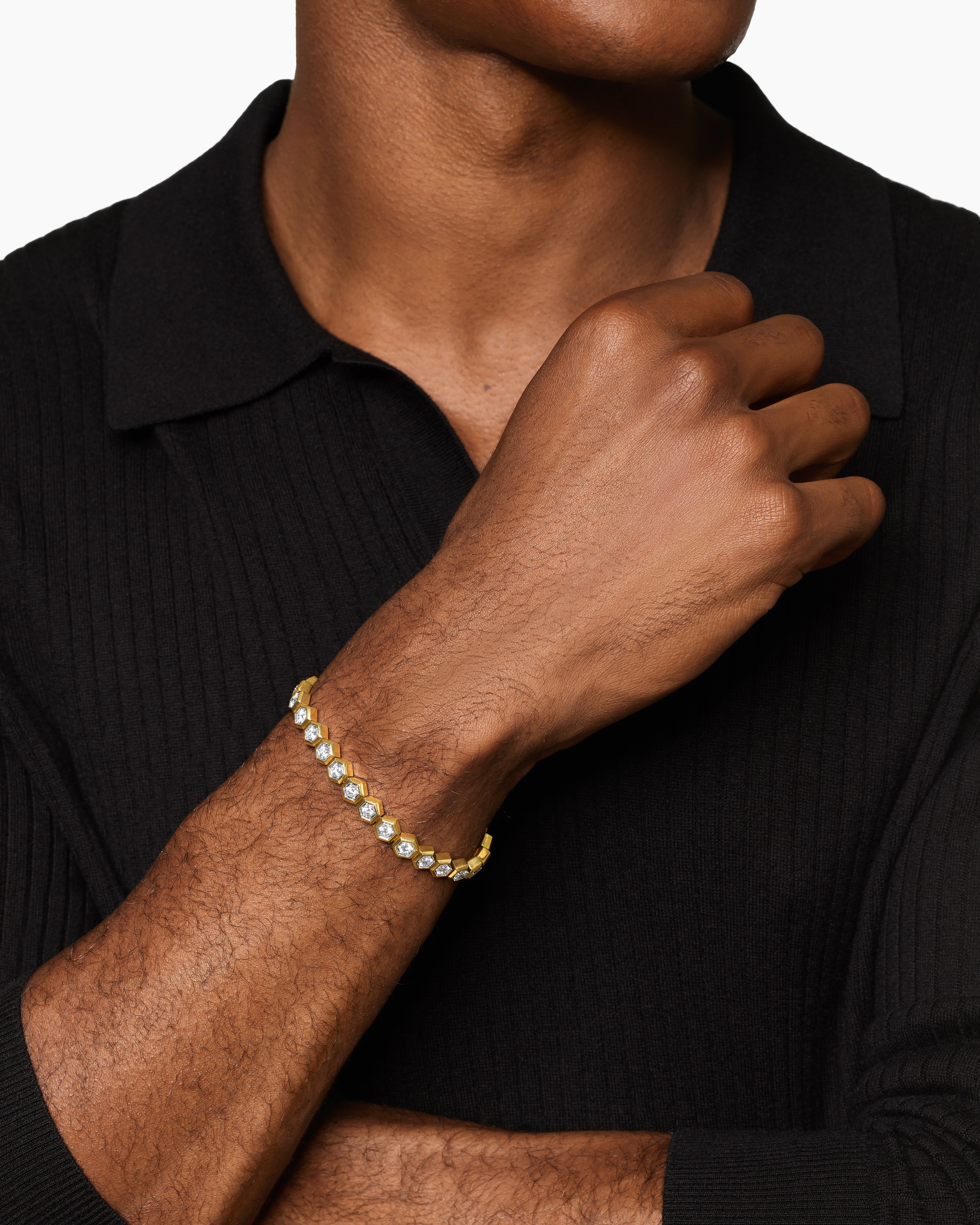 Hex Pavé Tennis Bracelet 18K Yellow Gold with Diamonds, 8mm