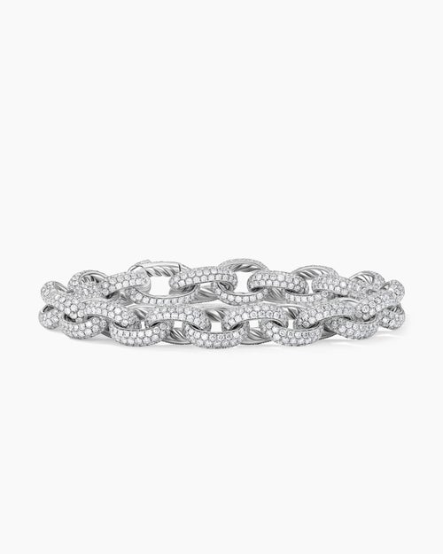Pavé Oval Link Chain Bracelet White Gold with Diamonds