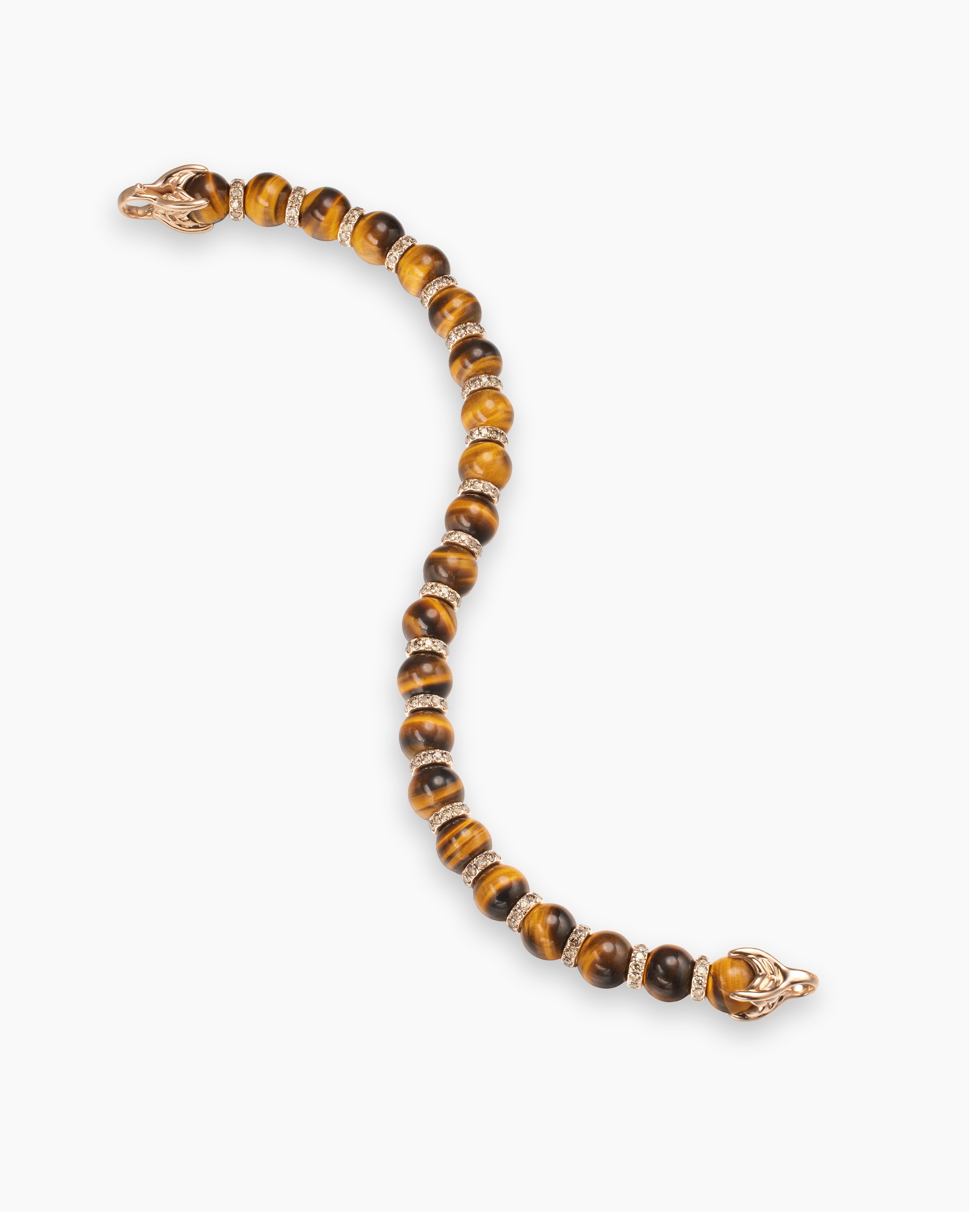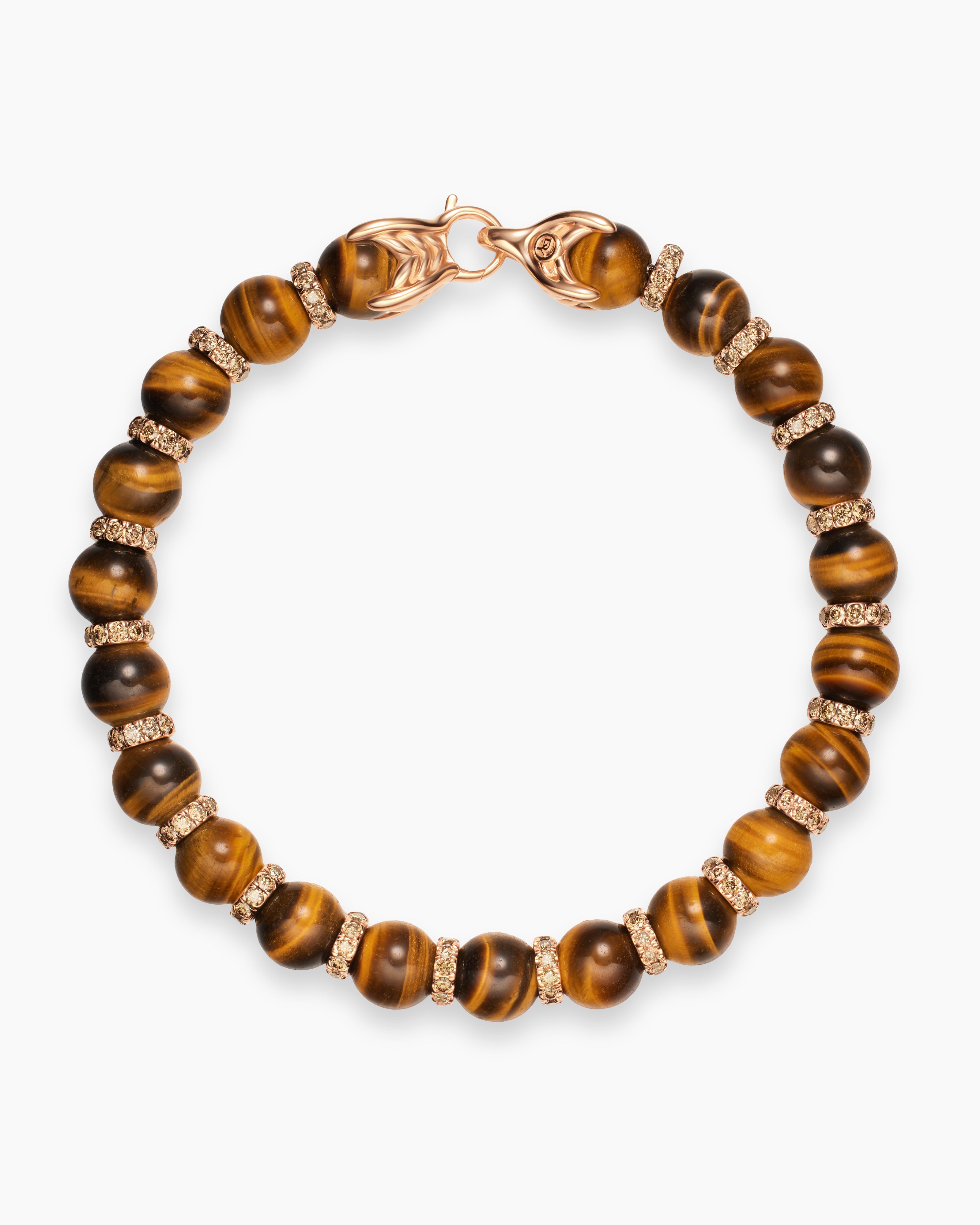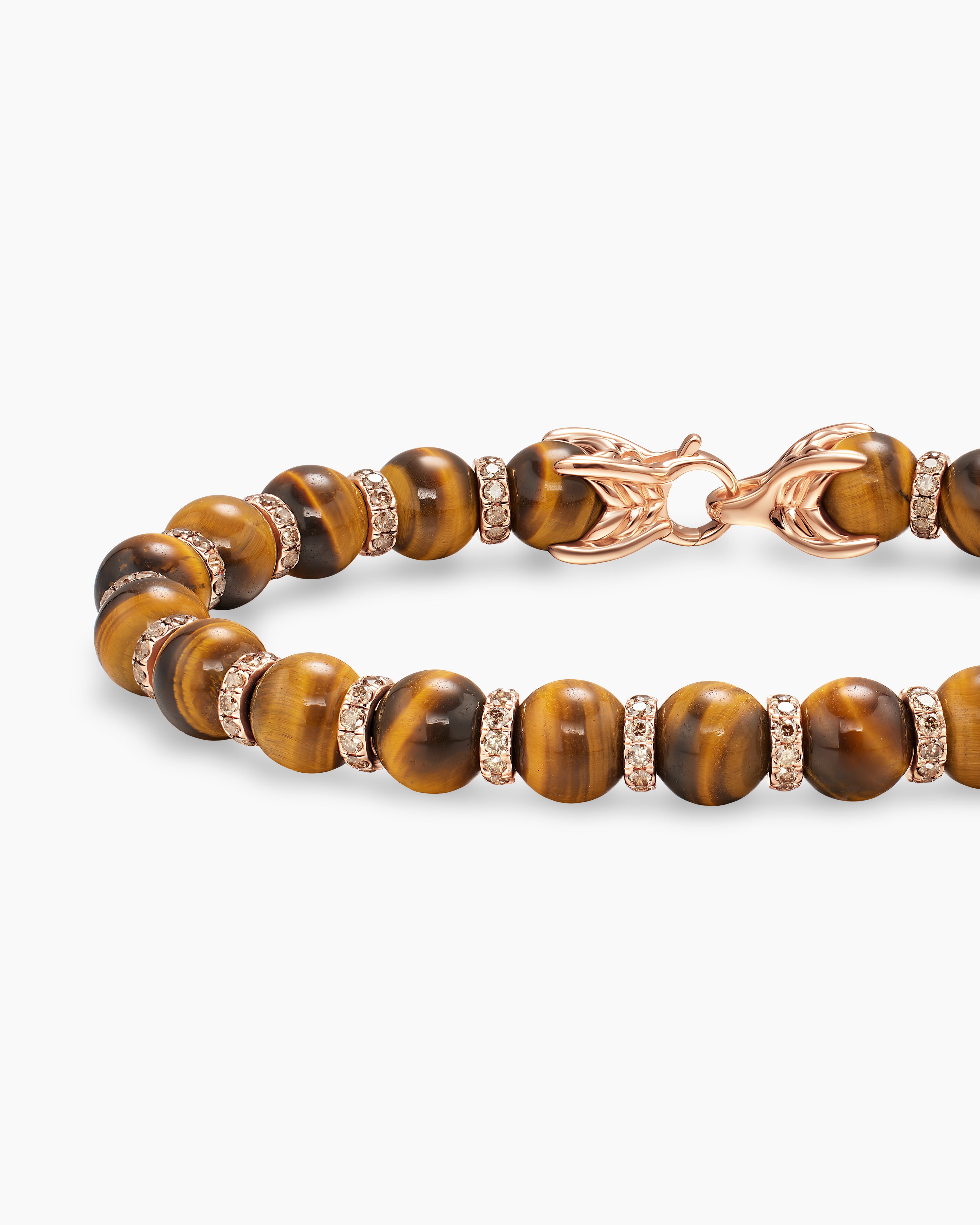 Spiritual Beads Bracelet 18K Rose Gold with Tiger's Eye and Cognac Diamonds, 8mm