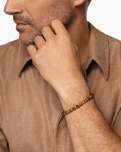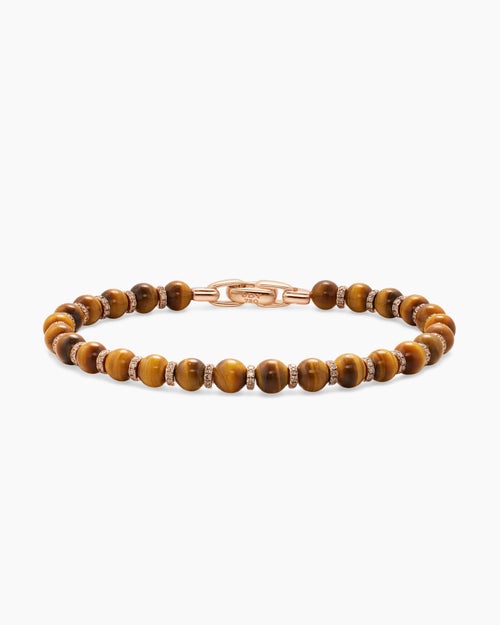 Spiritual Beads Bracelet 18K Rose Gold with Tiger's Eye and Cognac Diamonds,6mm