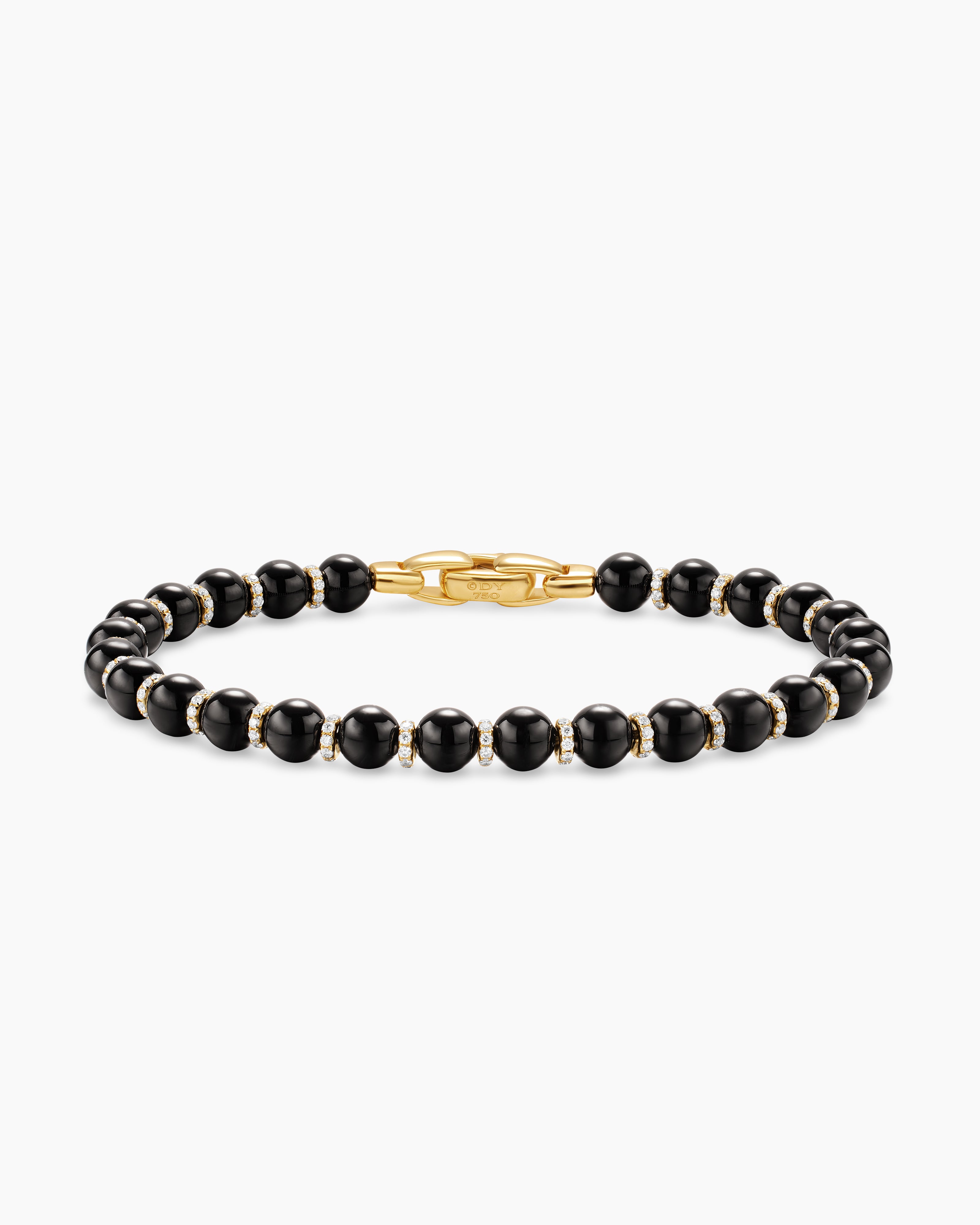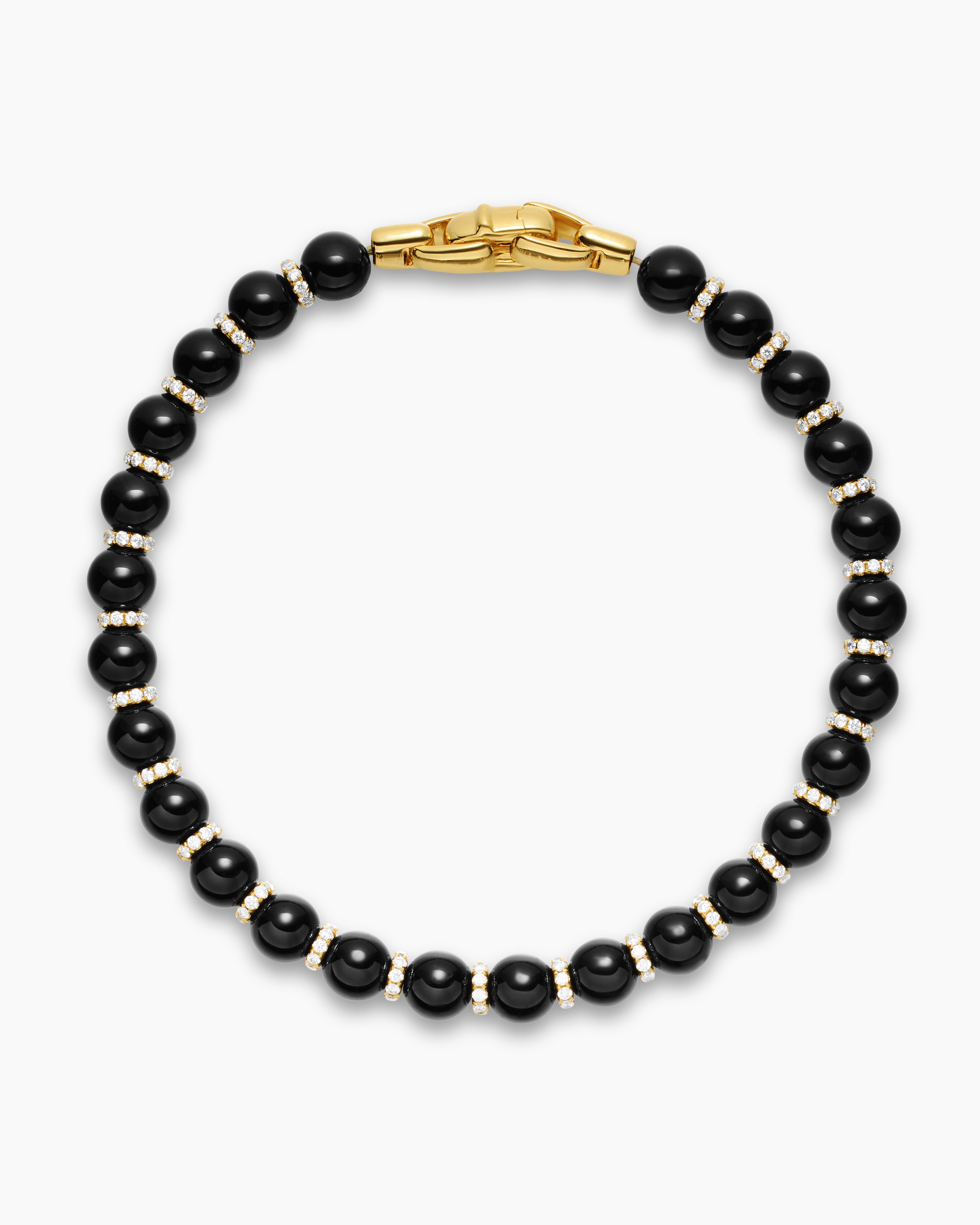 Spiritual Beads Bracelet 18K Yellow Gold with Black Onyx and Diamonds, 6mm