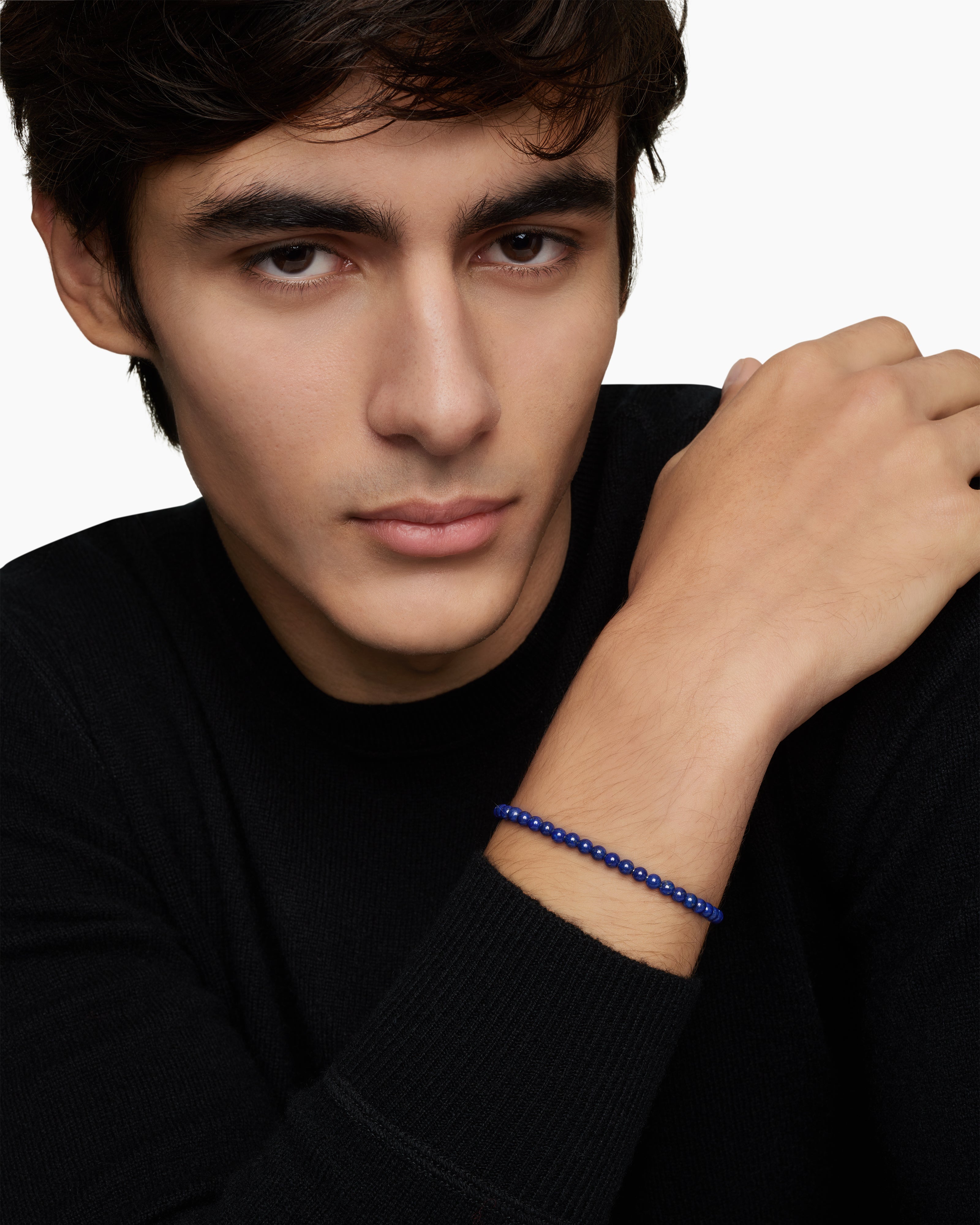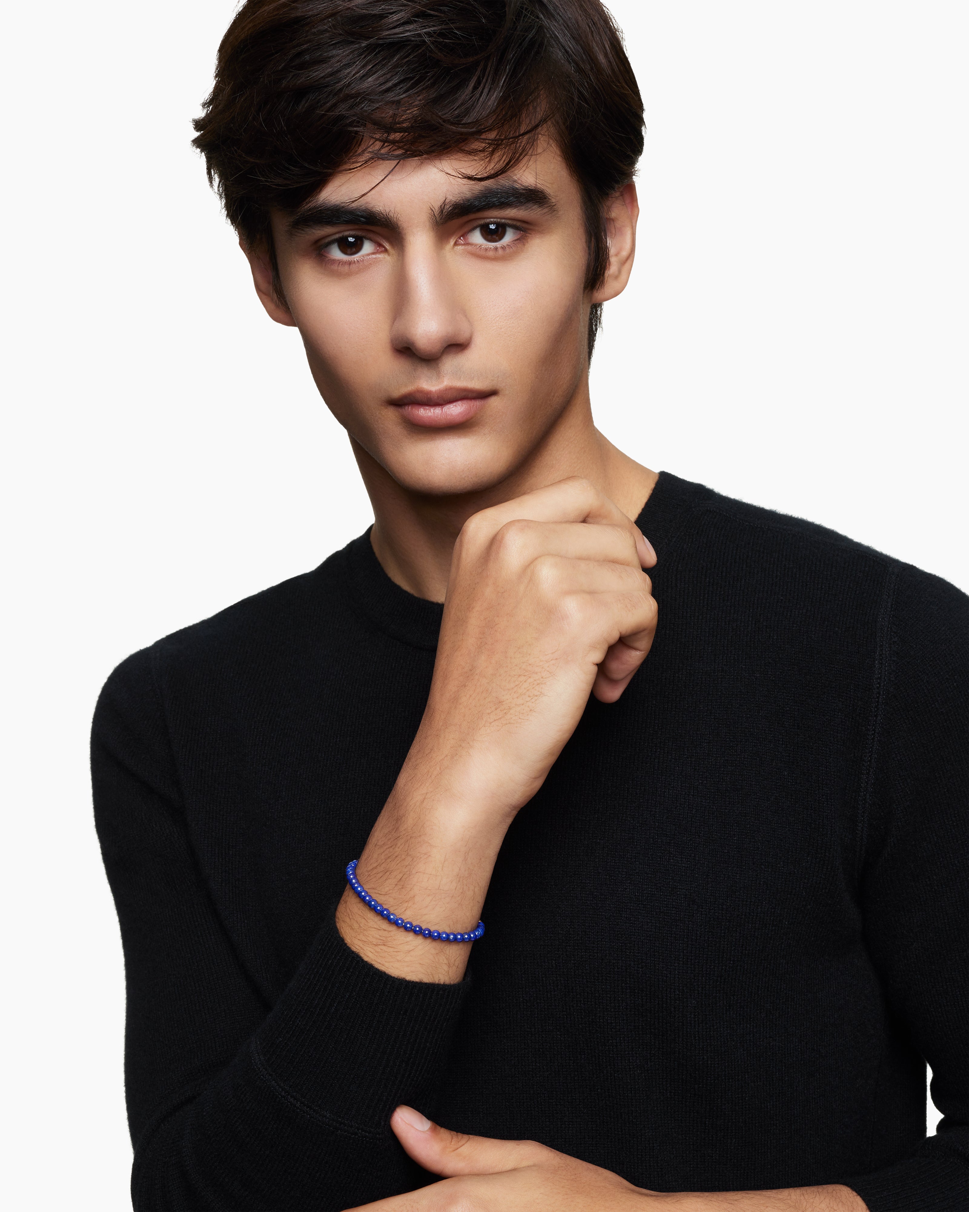 Spiritual Beads Bracelet Lapis with Sterling Silver, 4mm