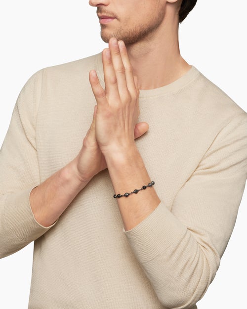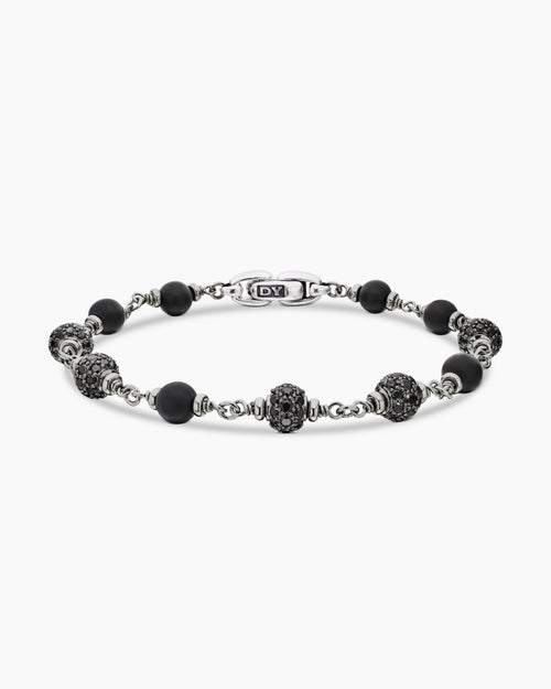 Spiritual Beads Bracelet Sterling Silver with Black Onyx and Black Diamonds, 6mm