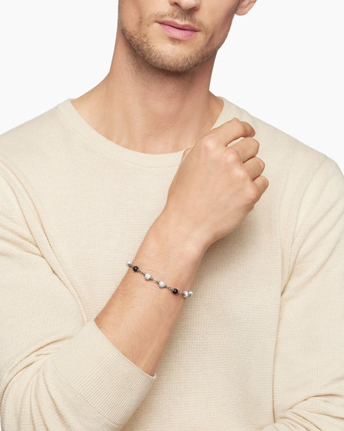 Spiritual Beads Bracelet Sterling Silver with Black Onyx and Diamonds, 6mm