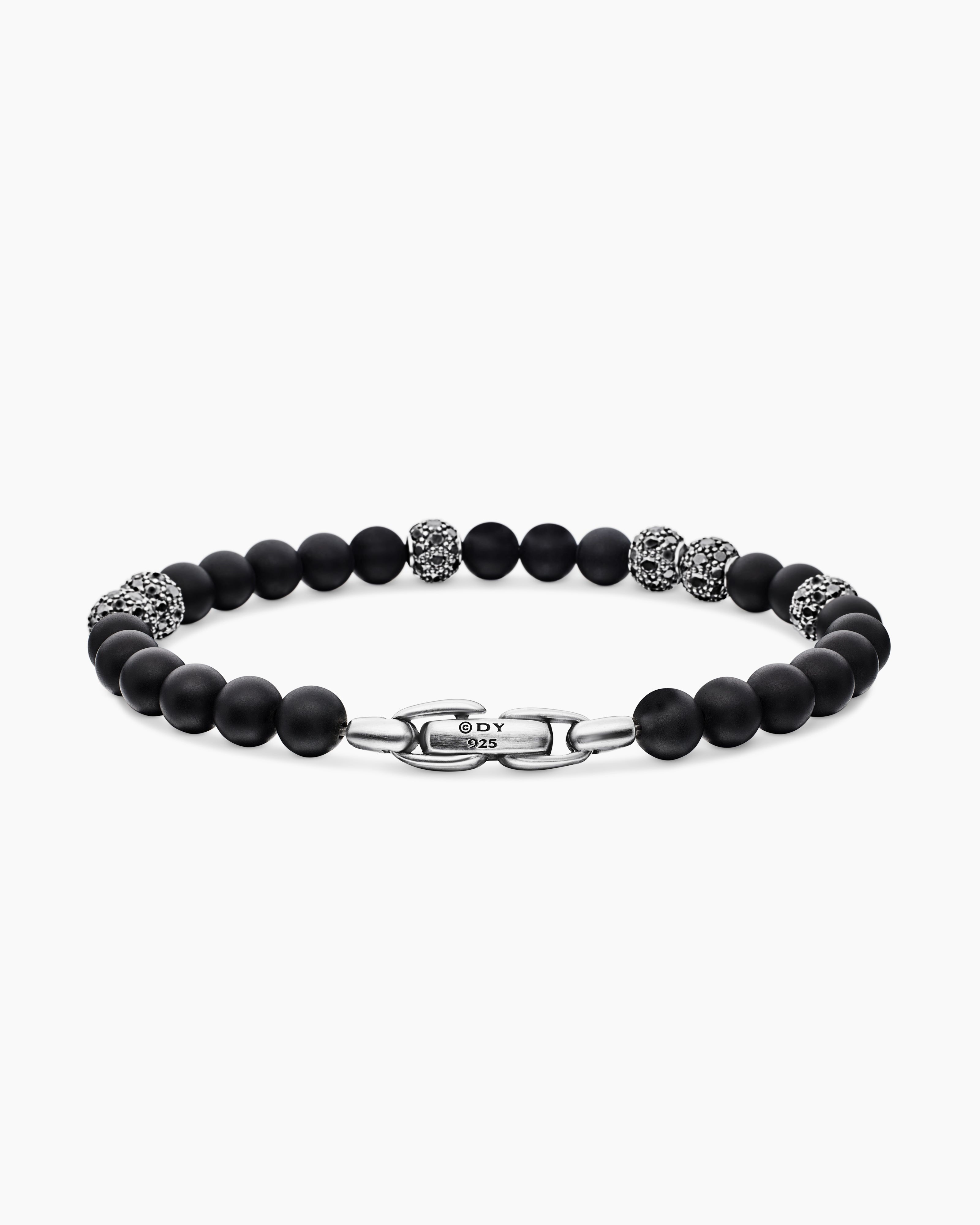 Spiritual Beads Bracelet Sterling Silver with Black Onyx and Pavé Black Diamonds, 6mm