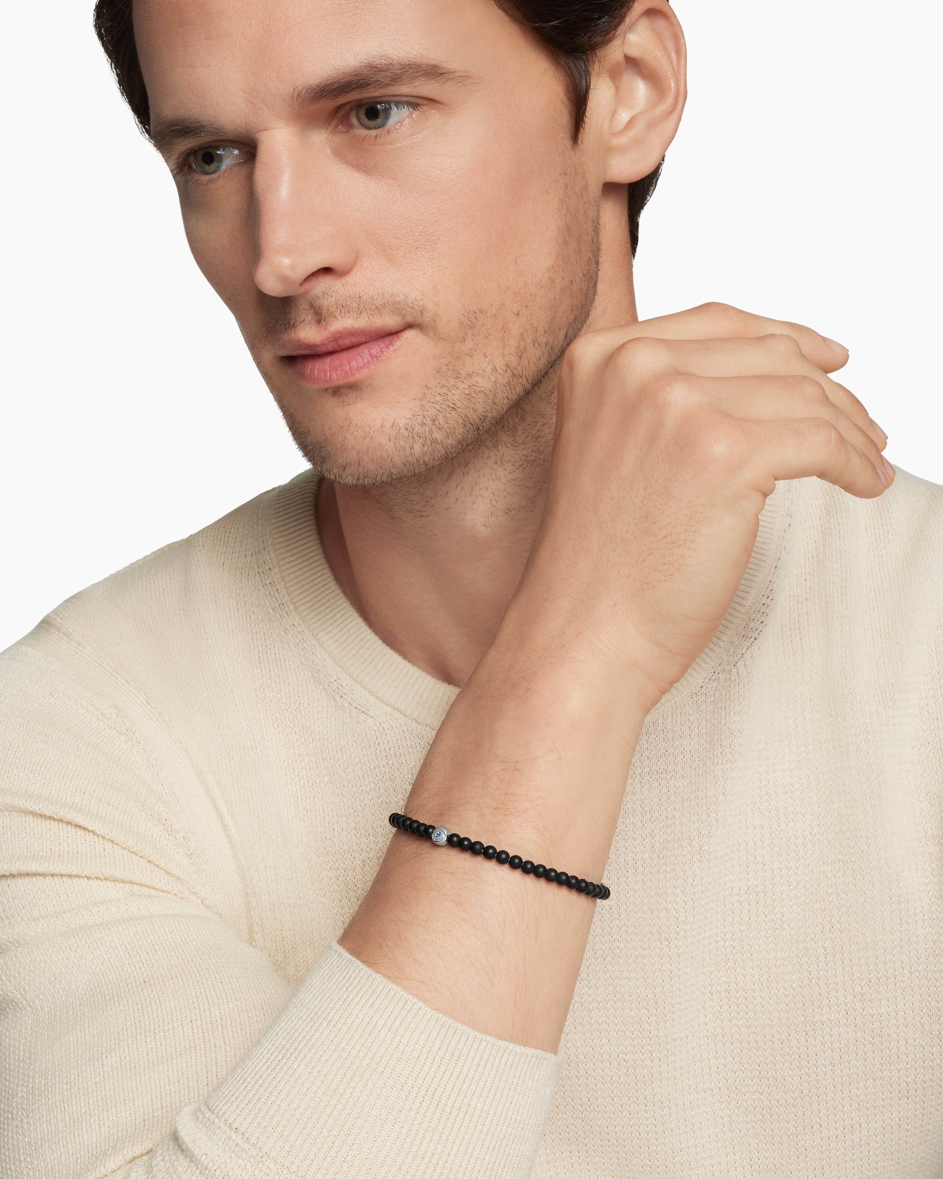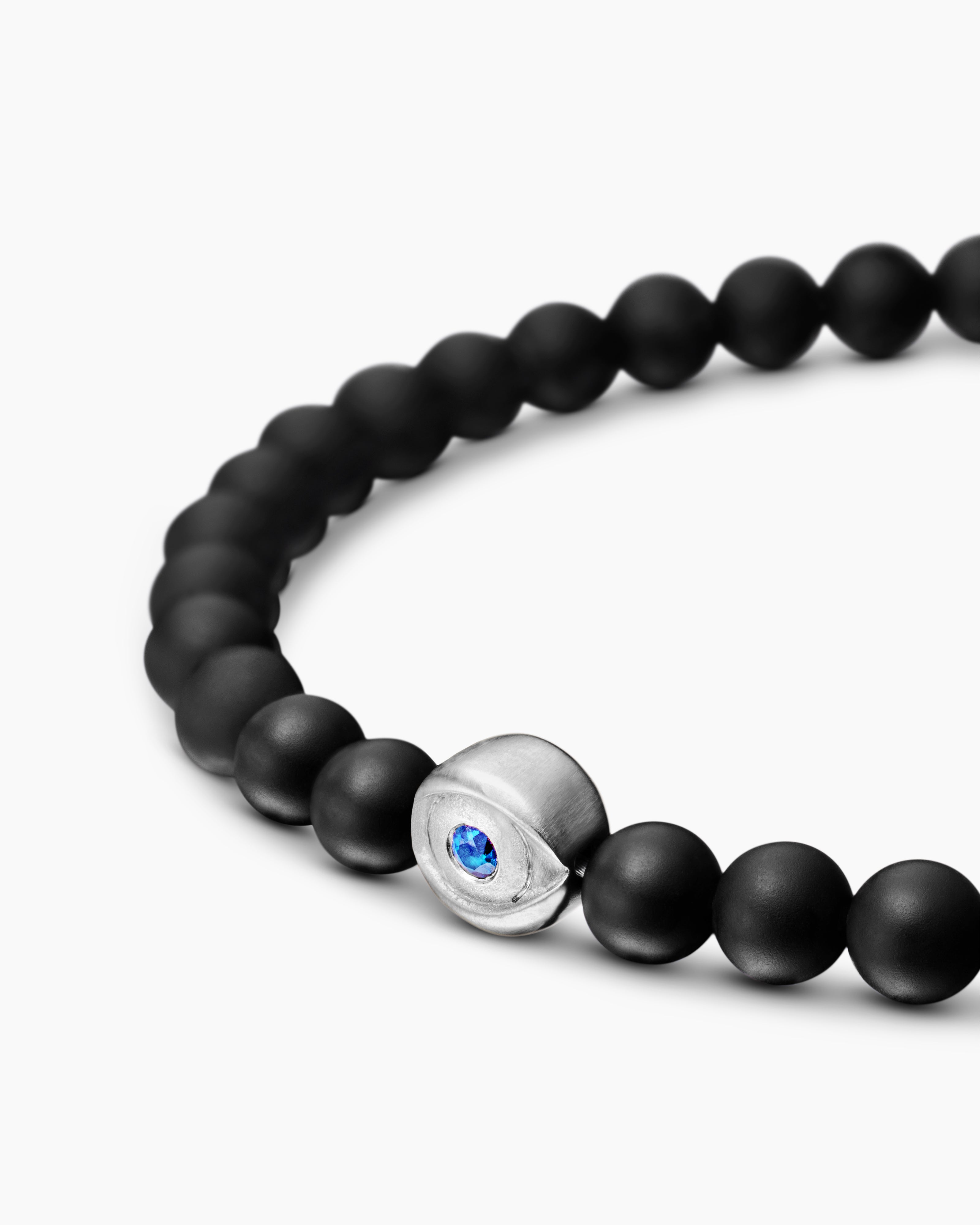 Spiritual Beads Evil Eye Bracelet Sterling Silver with Black Onyx and Sapphire, 4mm