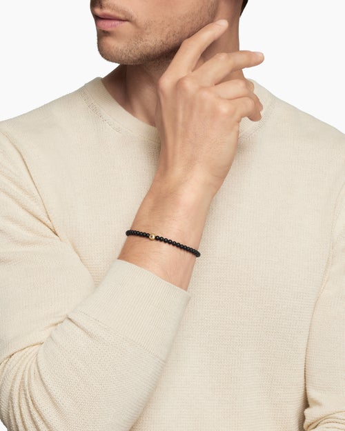 Spiritual Beads Evil Eye Bracelet Black Onyx, Sapphire and 18K Yellow Gold, 4mm