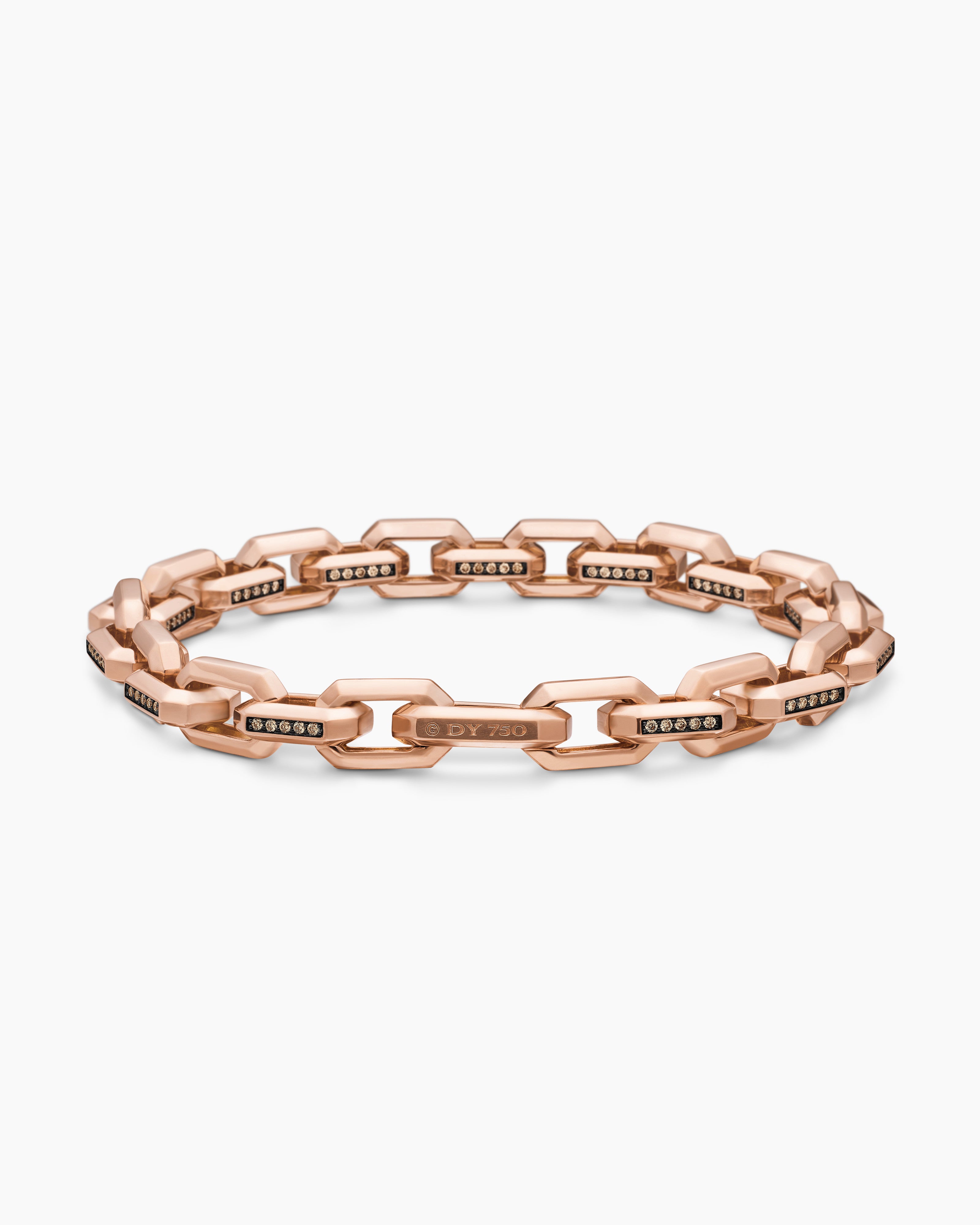 Streamline® Heirloom Chain Link Bracelet 18K Rose Gold with Pavé Cognac Diamonds, 7.5mm