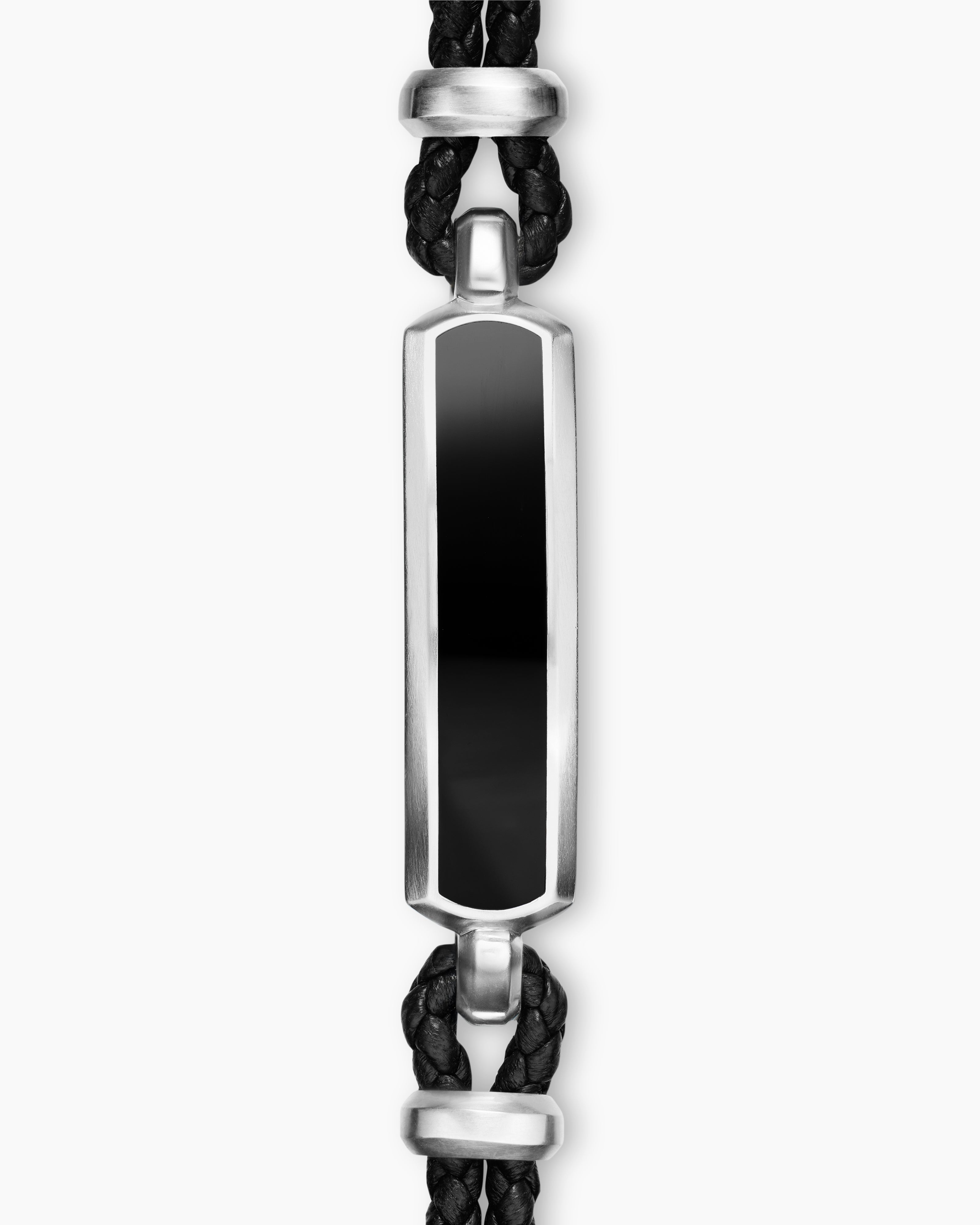 Streamline® ID Bar Bracelet Black Leather with Sterling Silver and Black Onyx, 6mm