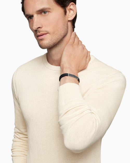 Streamline® ID Bracelet Black Rubber with Black Diamonds and Sterling Silver, 10mm