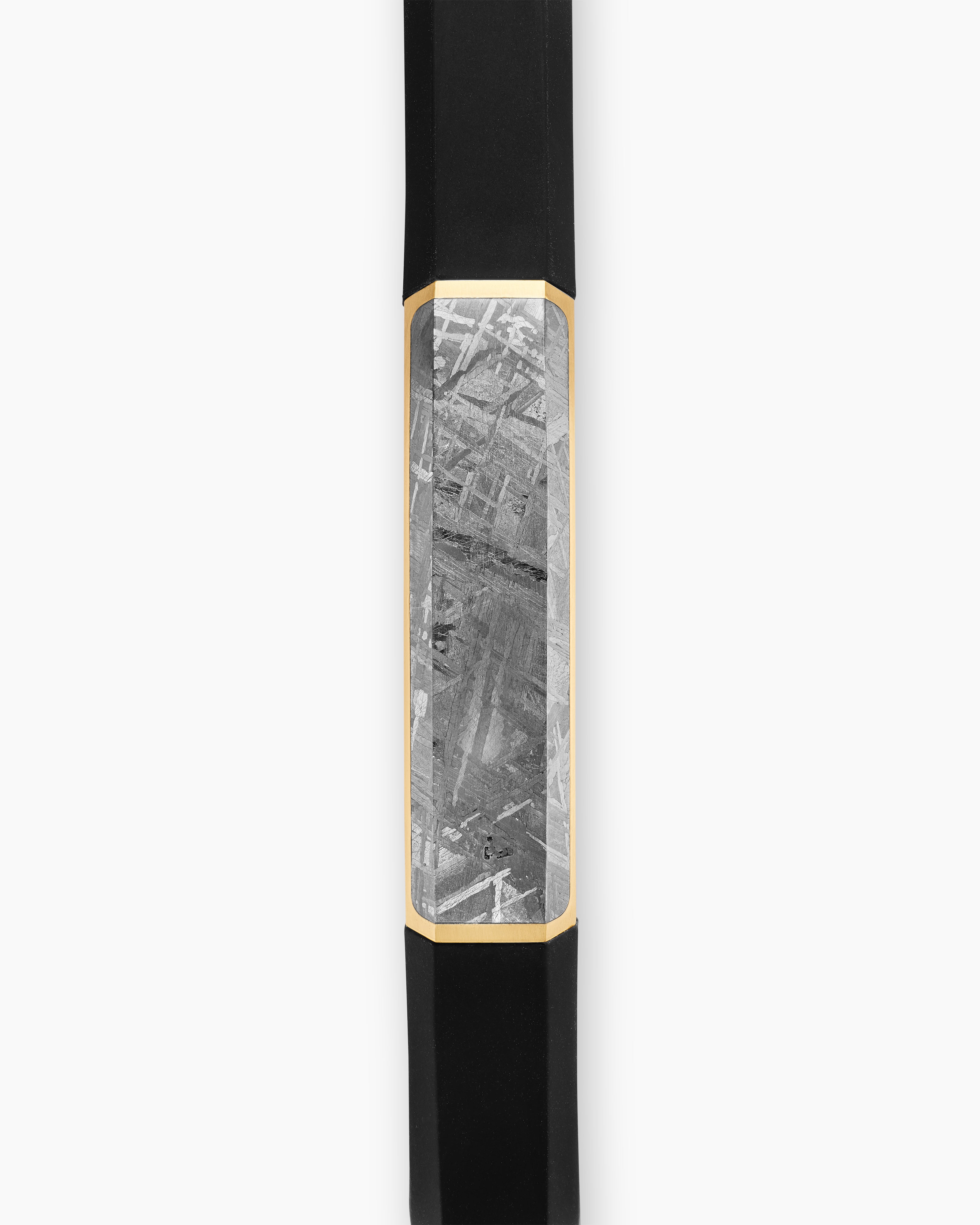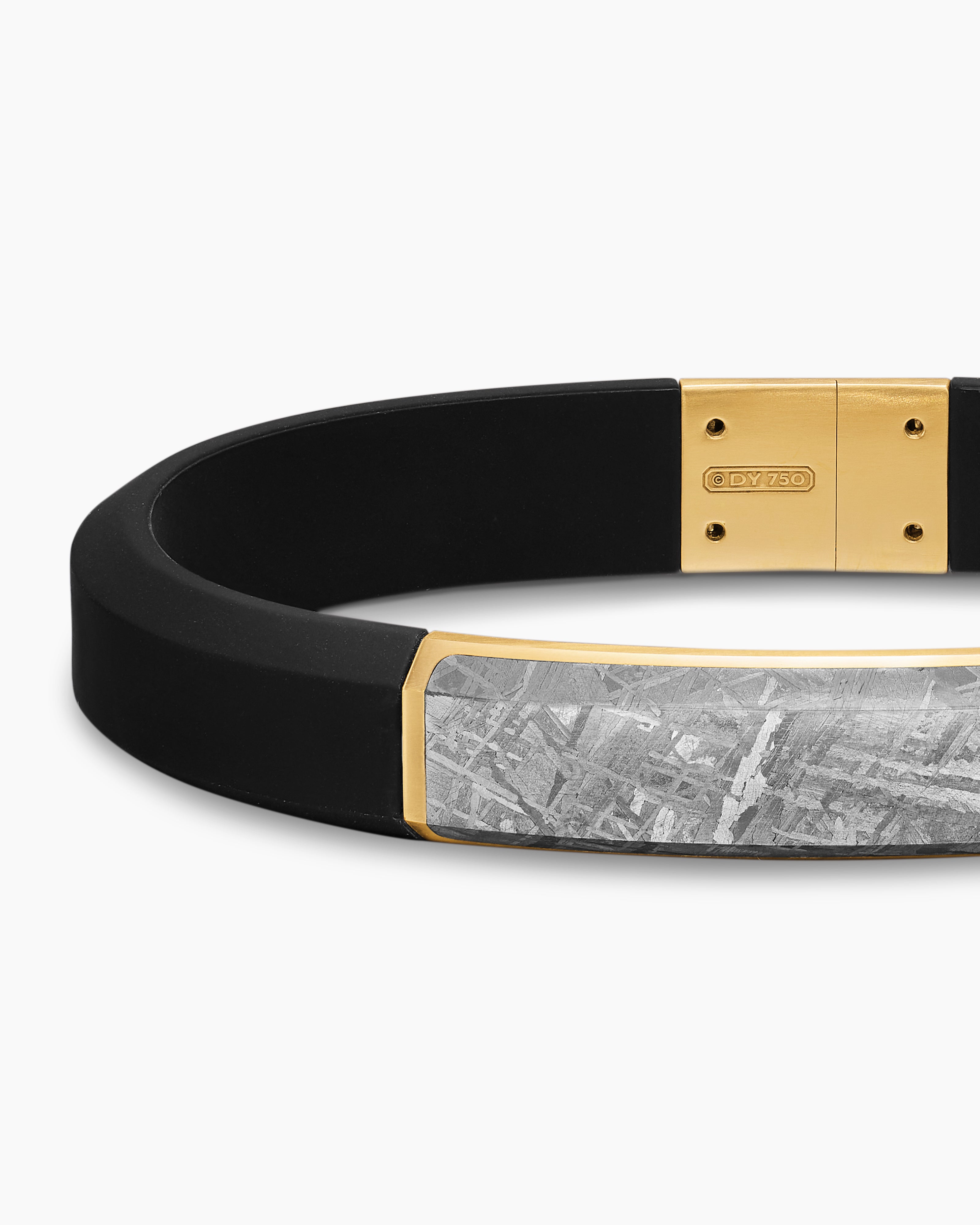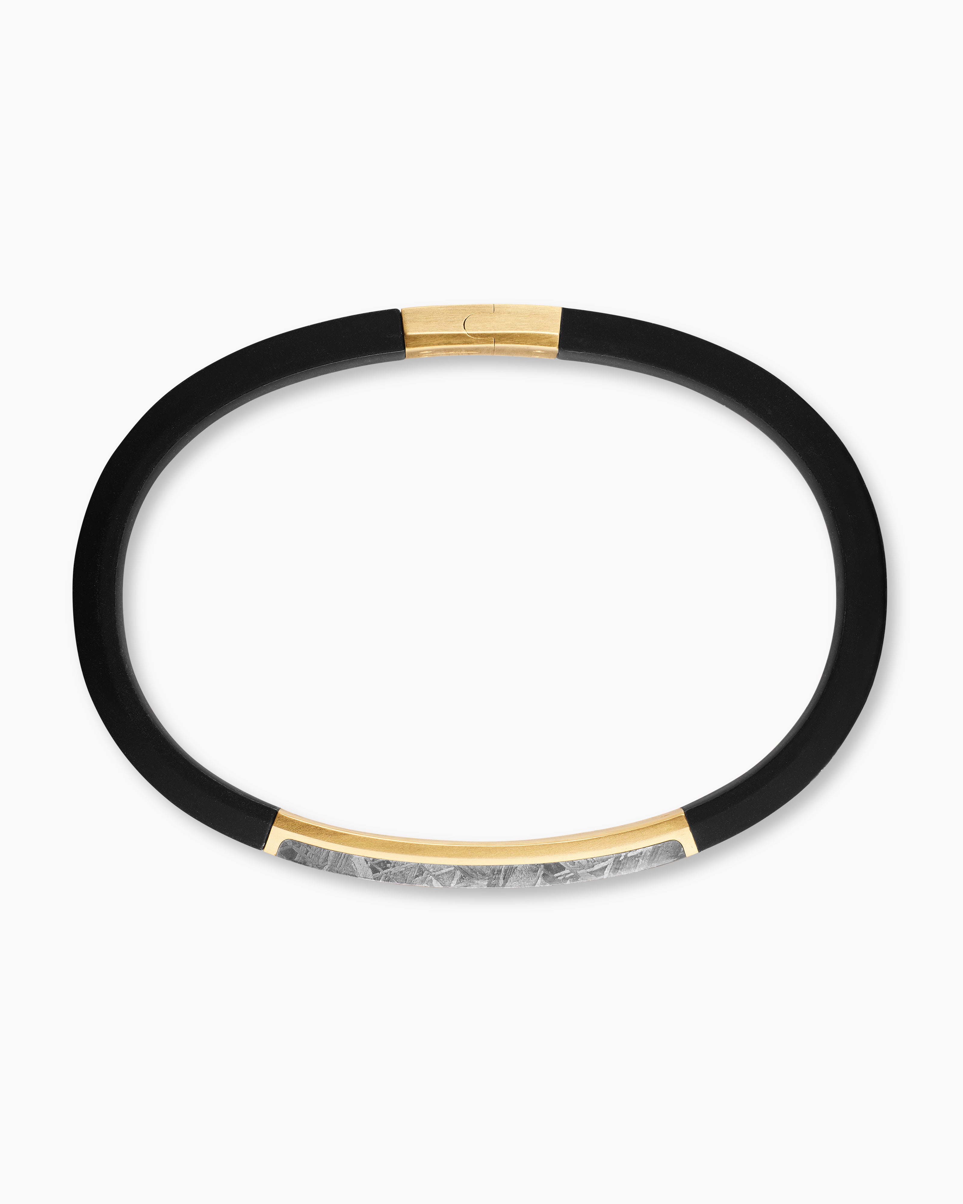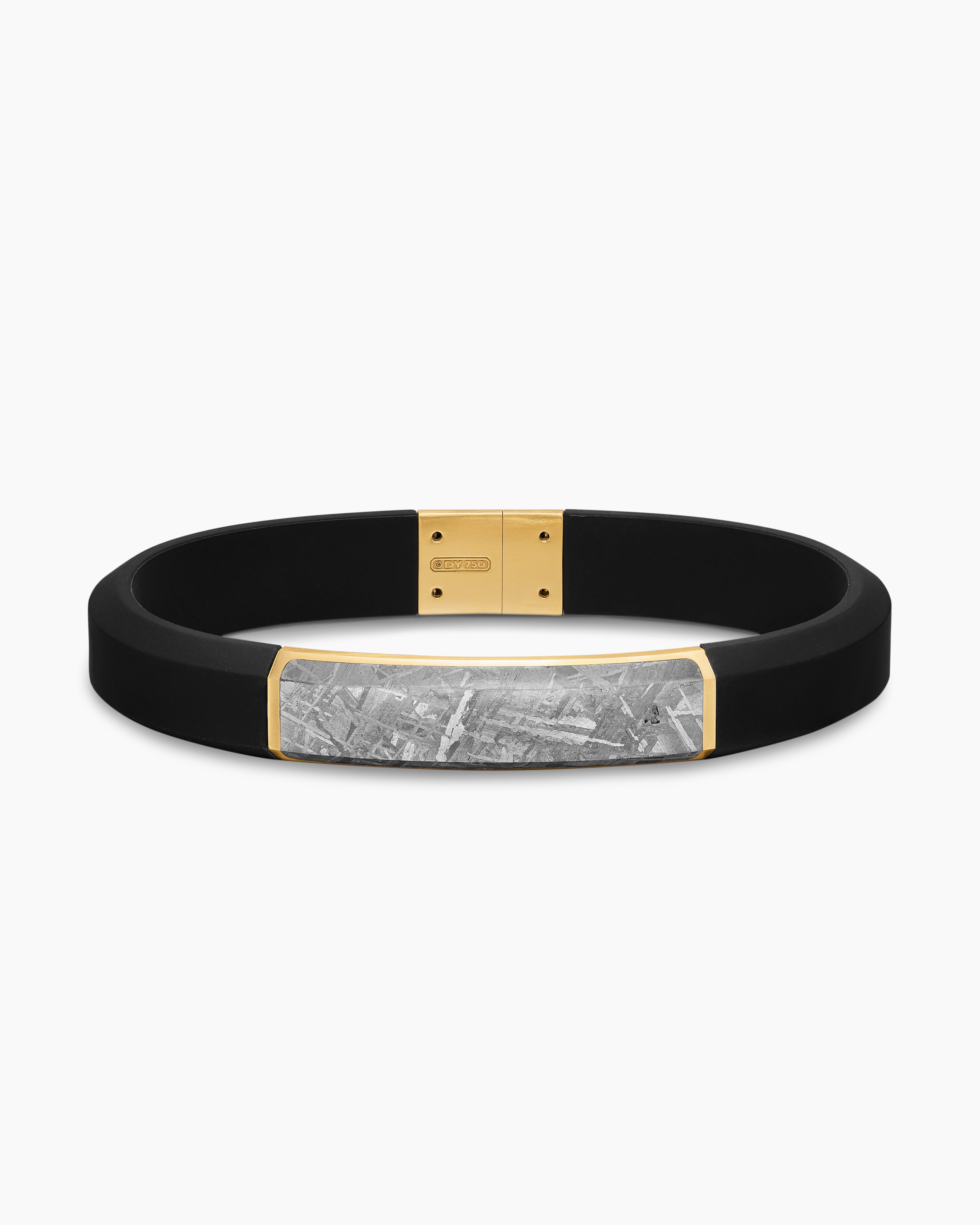 Streamline® ID Bracelet Black Rubber with Meteorite and 18K Yellow Gold, 10mm