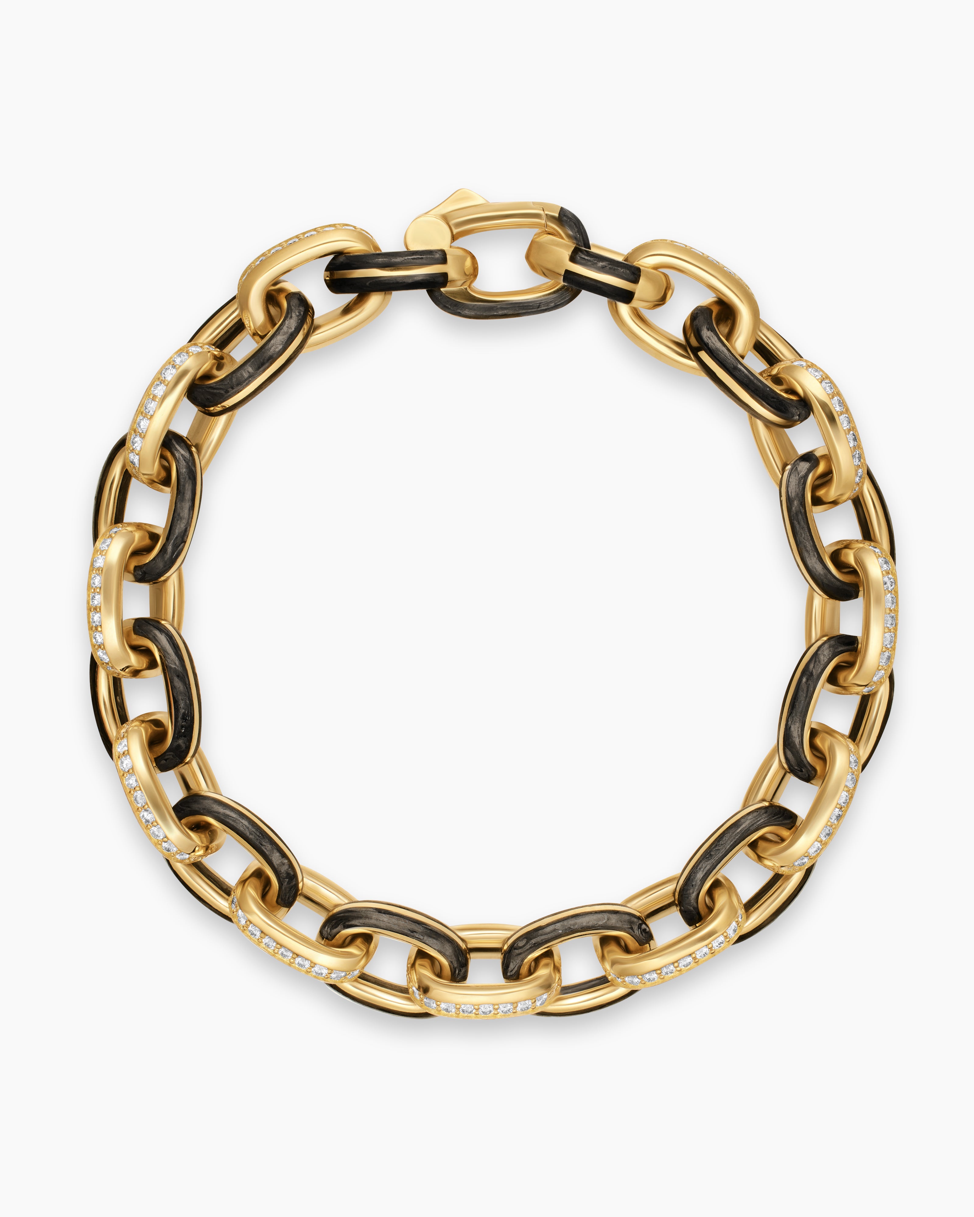 Streamline® Oval Link Bracelet 18K Yellow Gold with Forged Carbon and Diamonds, 10.8mm