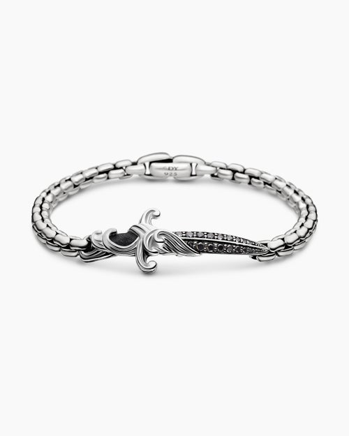 Waves Dagger Bracelet Sterling Silver with Black Diamonds, 5mm