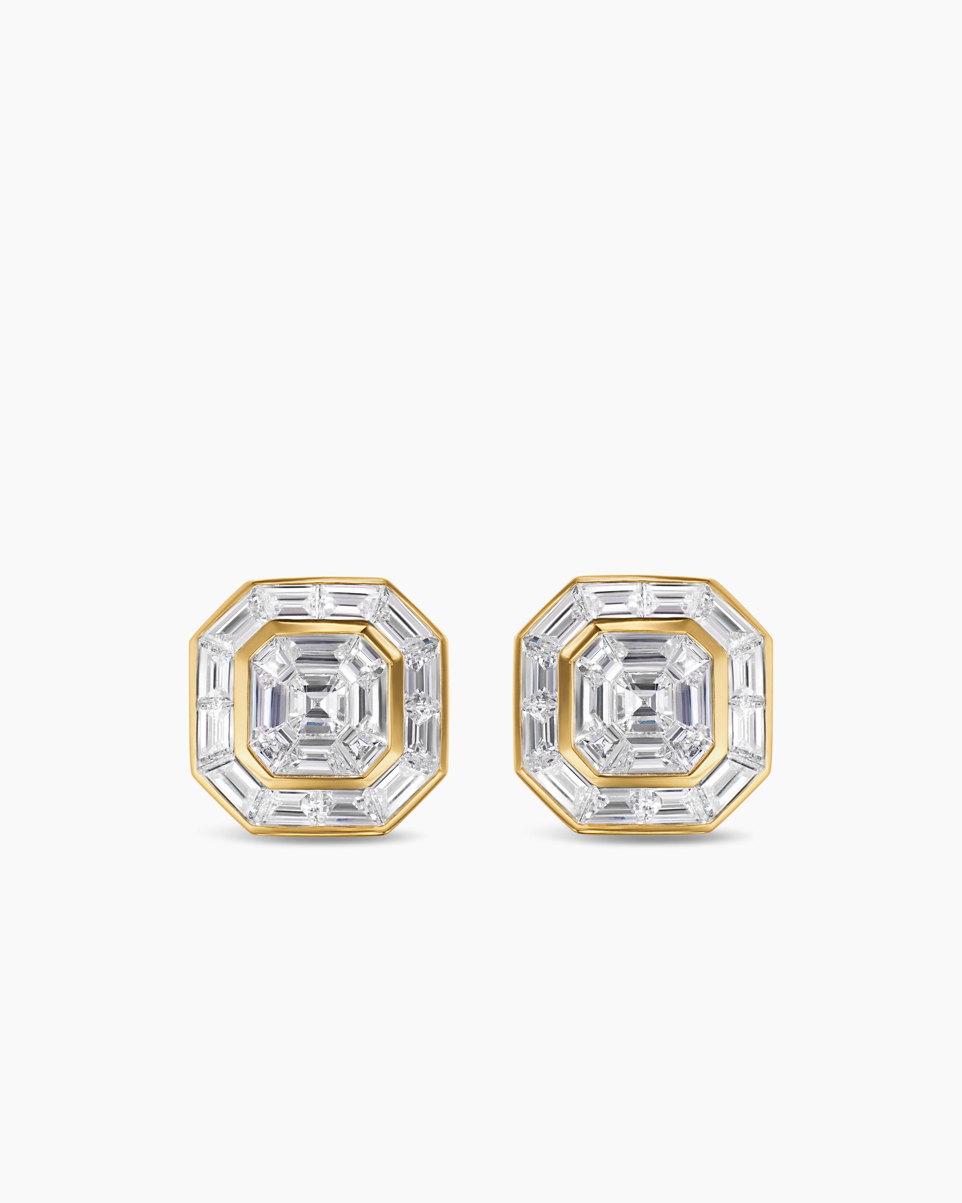 Men's Deco Stud Earrings Yellow Gold with Diamonds