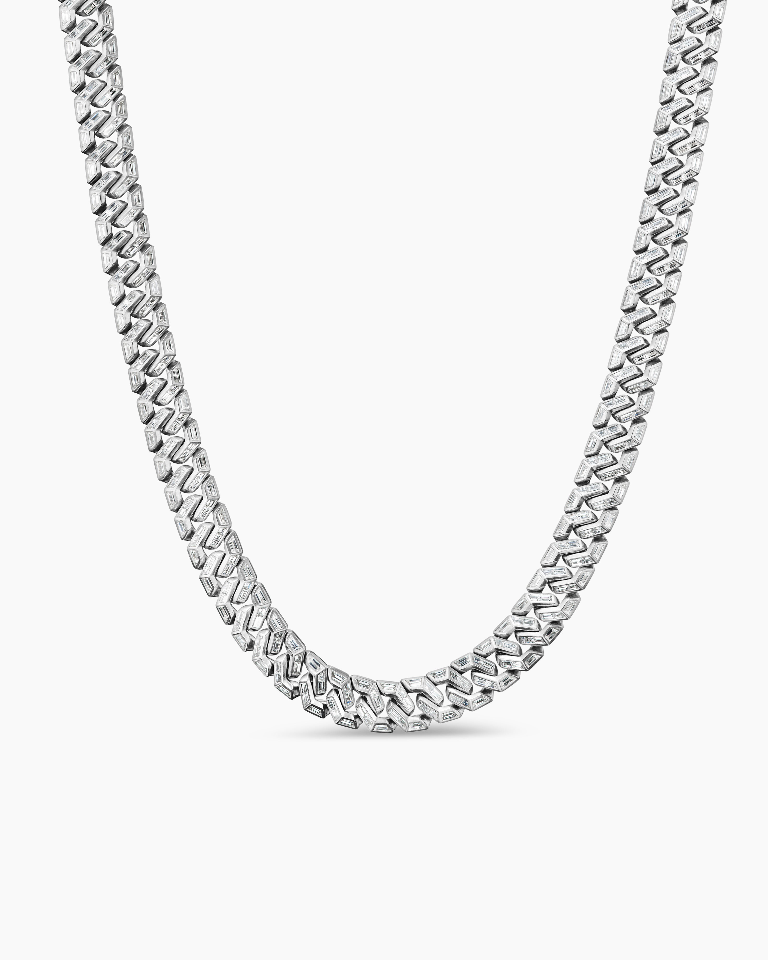 Men's Angular Curb Chain Necklace Platinum with Diamonds