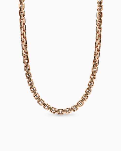 Box Chain Necklace 18K Rose Gold with Pavé Cognac Diamonds, 7.5mm