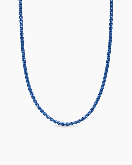 Box Chain Necklace Sterling Silver with Blue Stainless Steel, 2.7mm